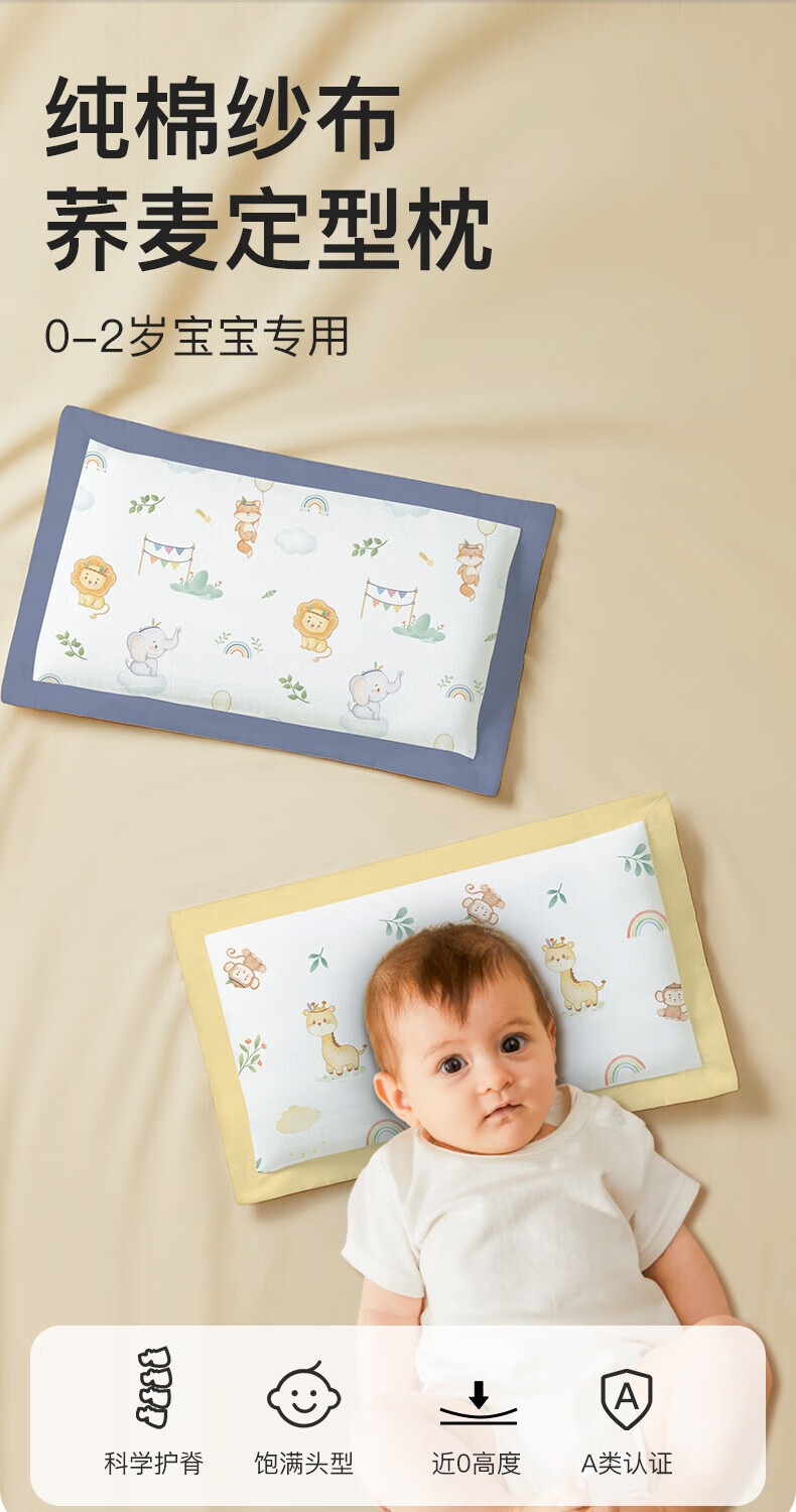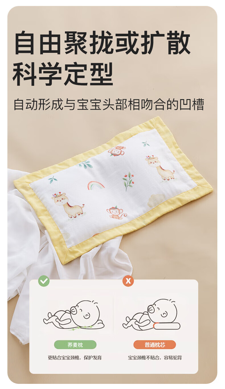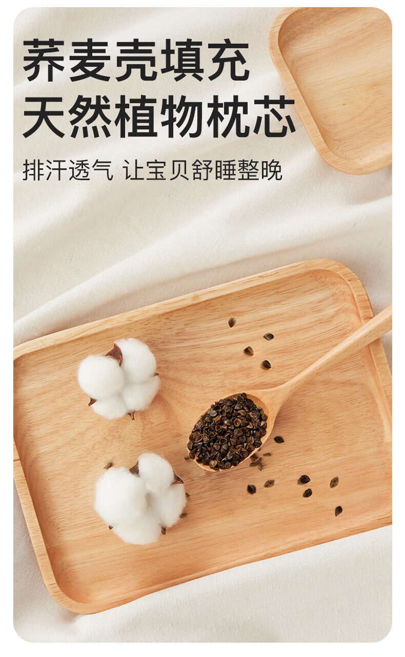 Duolingduo Baby Shaping Pillow Newborn Baby Buckwheat Baby Pillow Correct Sleeping Head Shape Anti-deviation Pillow Xiong Youchengzhu Buckwheat Shell Pillow Core + Cotton Pillowcase (polka dot 25x40x1