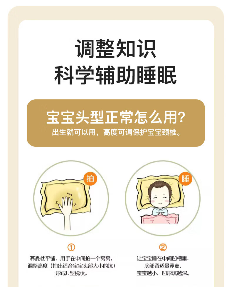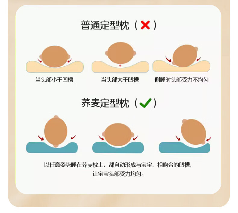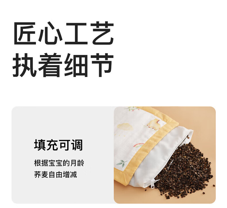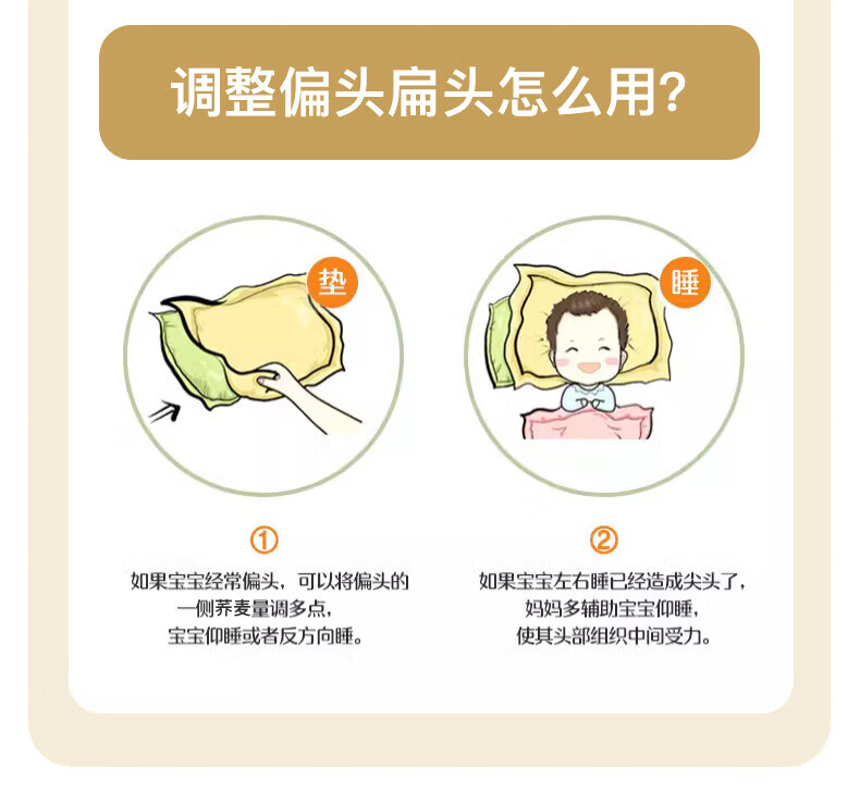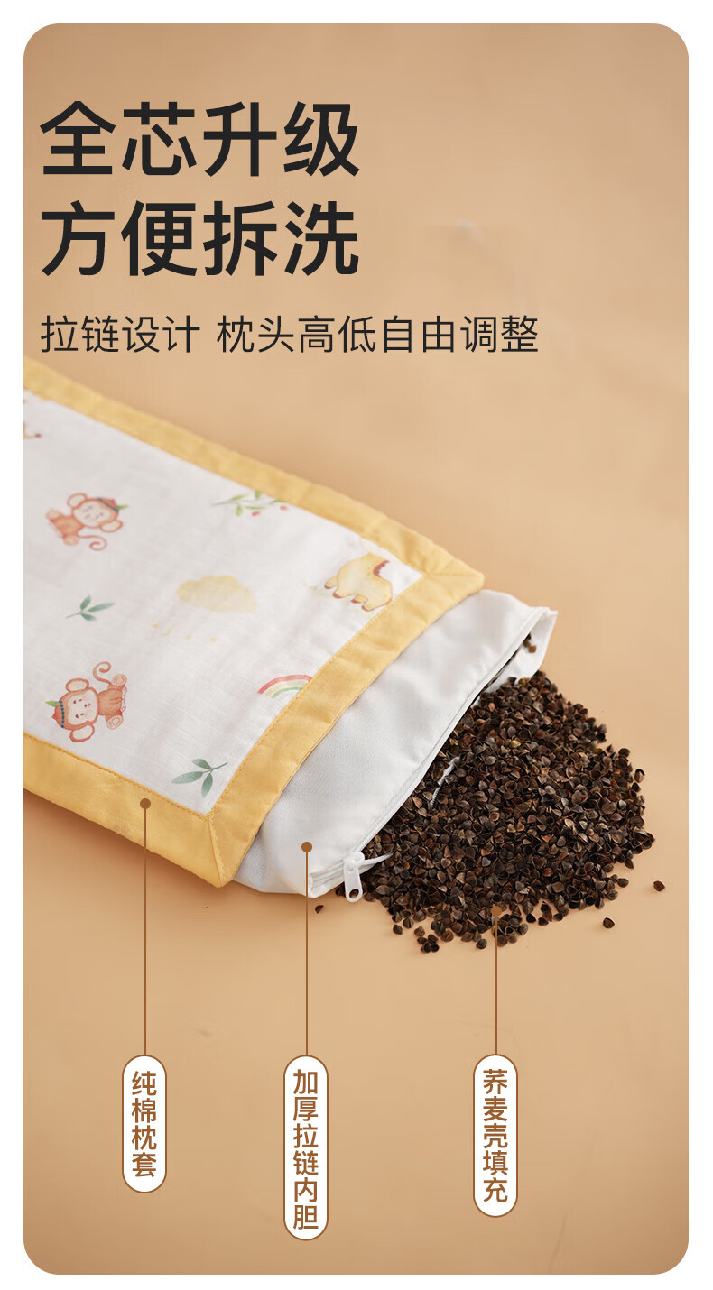 Duolingduo Baby Shaping Pillow Newborn Baby Buckwheat Baby Pillow Correct Sleeping Head Shape Anti-deviation Pillow Xiong Youchengzhu Buckwheat Shell Pillow Core + Cotton Pillowcase (polka dot 25x40x1