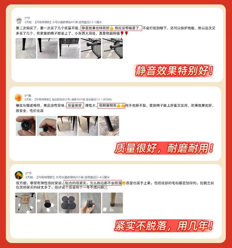 Shantou Lincun Silent Silicone Table and Chair Leg Covers Wear-Resistant Anti-Slip Protective Pads Upgraded Extra Thick Model Mini Crystal Model Transparent Black 6 Pack_Diameter.~.7