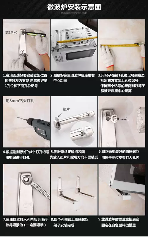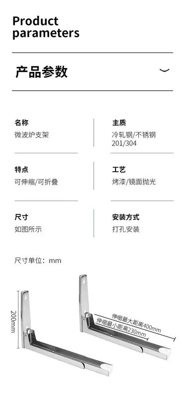 Yusenyi retractable 304 stainless steel oven rack microwave oven rack wall-mounted microwave oven rack wall-mounted bracket bracket carbon steel thickened white bracket (one pair)
