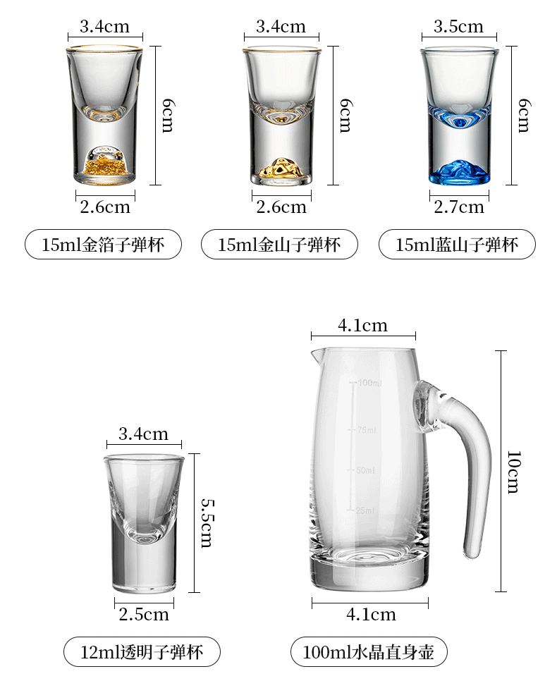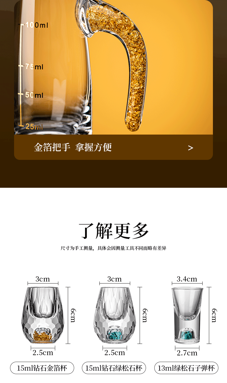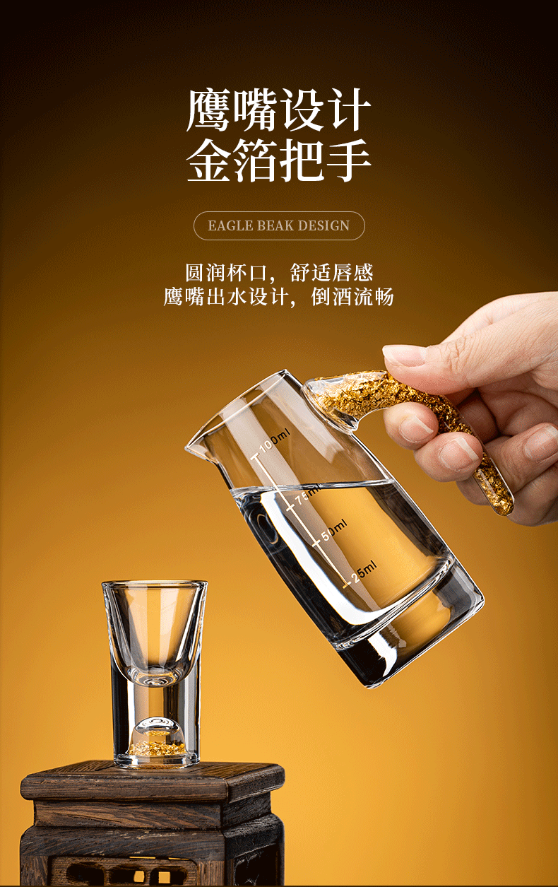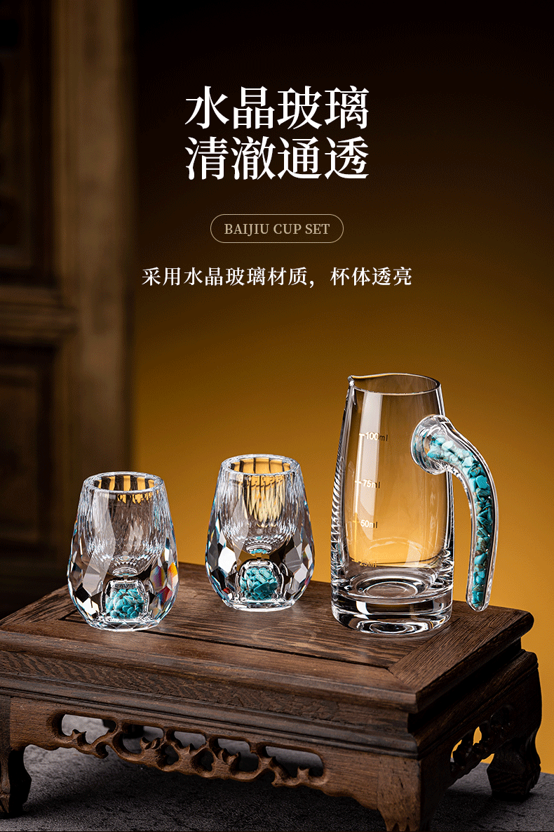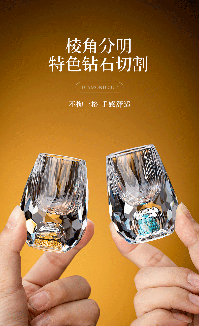 Hejian Gong Crystal Light Luxury Glass White Wine Cup Set Household Gold Foil Chinese Small Wine Cup Wine Divider Wine Set Deer Head Cup Holder 10+10 Foil Mountain Helicopter Kettle X10+Jinshan Cup X1