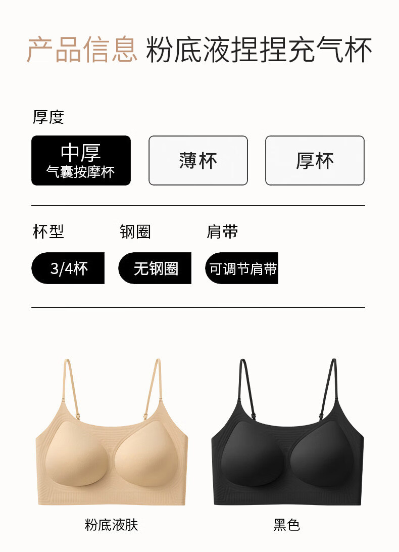 MiiOW pinch inflatable cup 2~6CM traceless liquid foundation underwear female beauty back comic breast invisible anti-exposure vest bra black L 115-145Jin Jin is equal to 0.5 kg