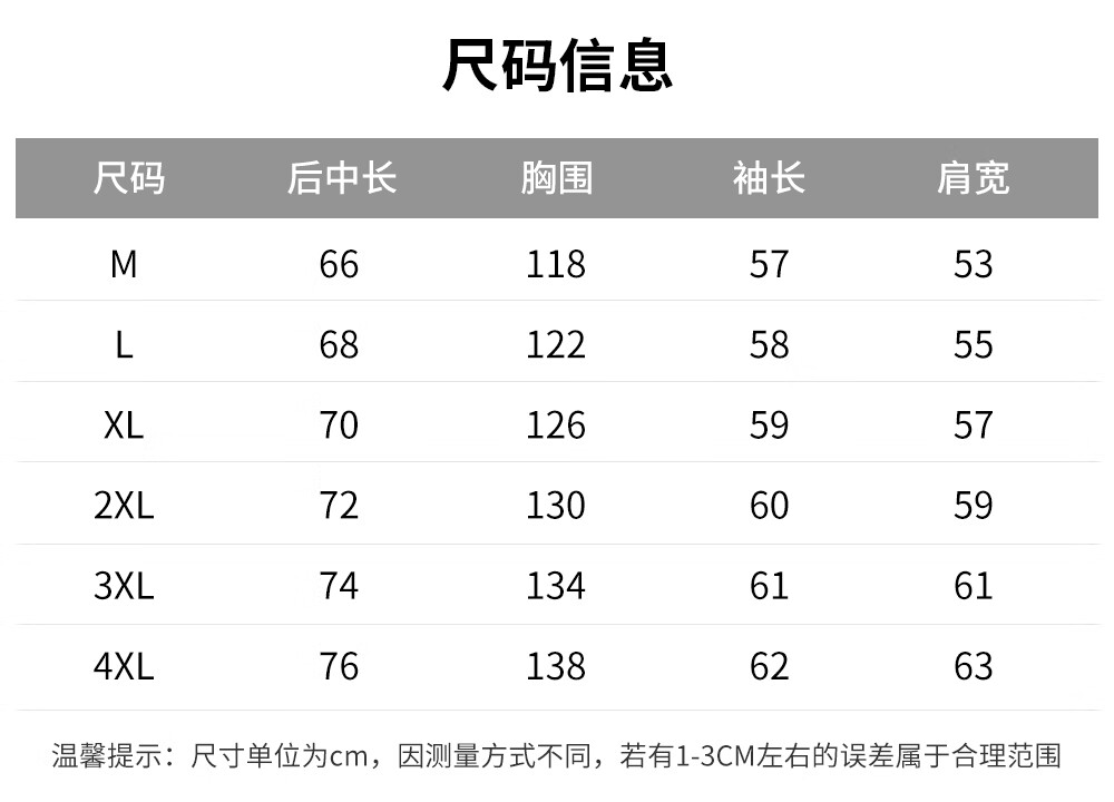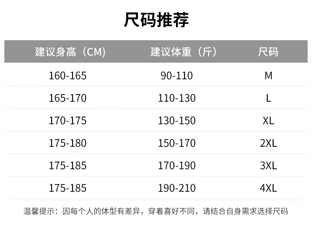 China (cm) 165 / 88-90 170 / 96-98 175 / 108-110 180 / 118-122 185 / 126-130