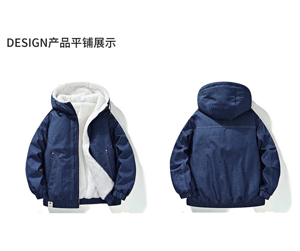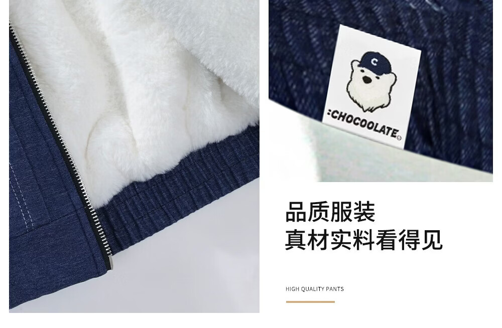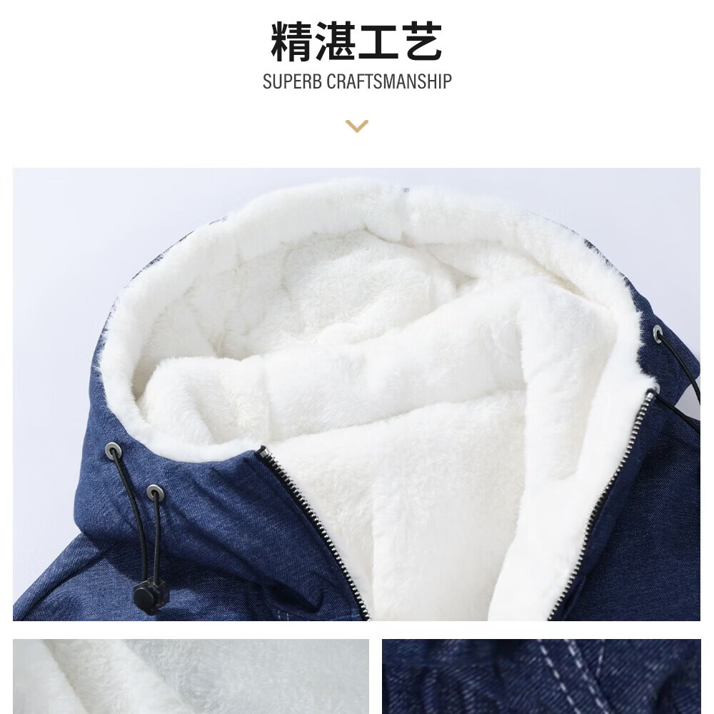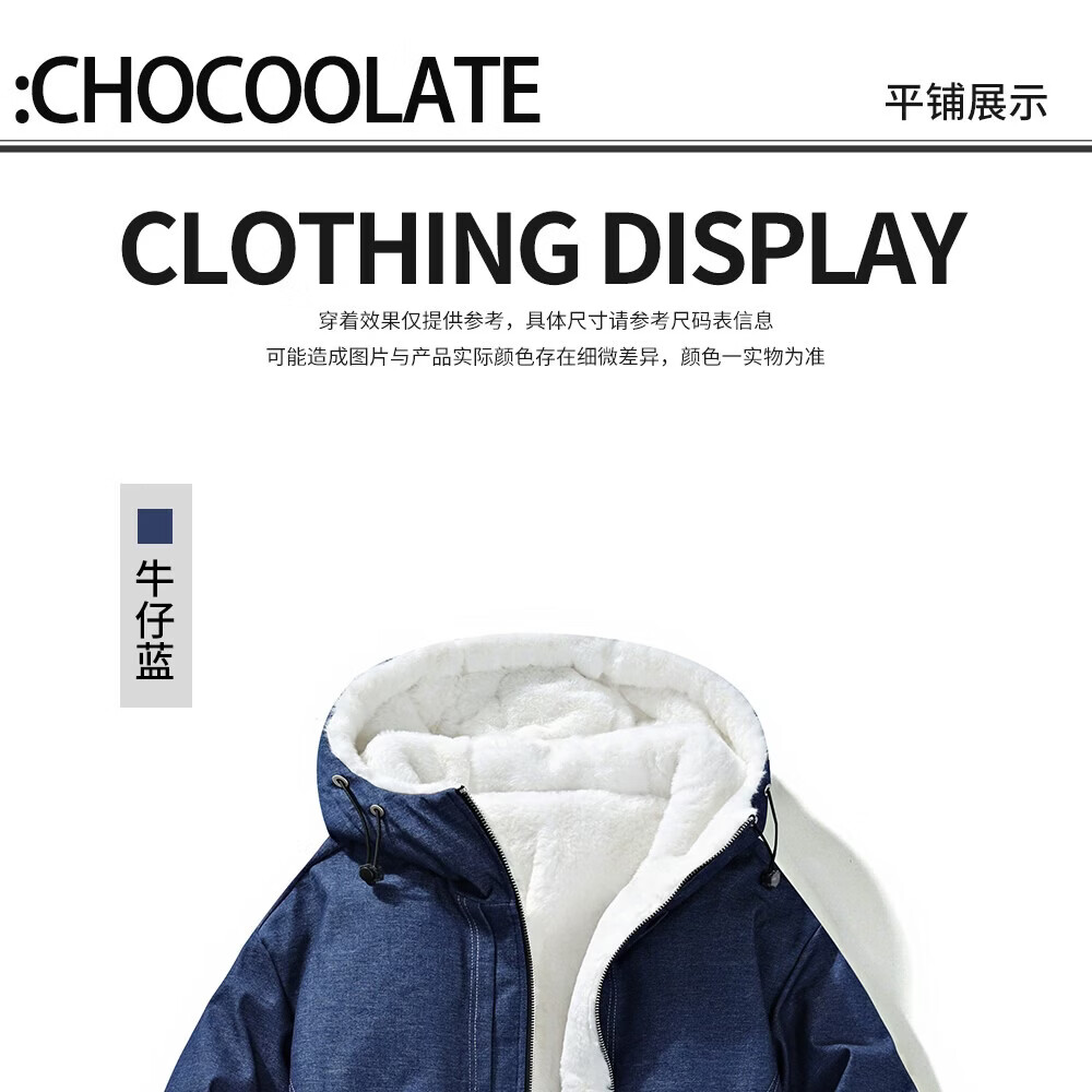 CHOCOOLATE it American trendy brand casual hooded cotton coat for men in winter plus velvet thickened loose warm casual versatile cotton jacket denim blue M recommended 90-110Jin Jin equals 0.5 kg