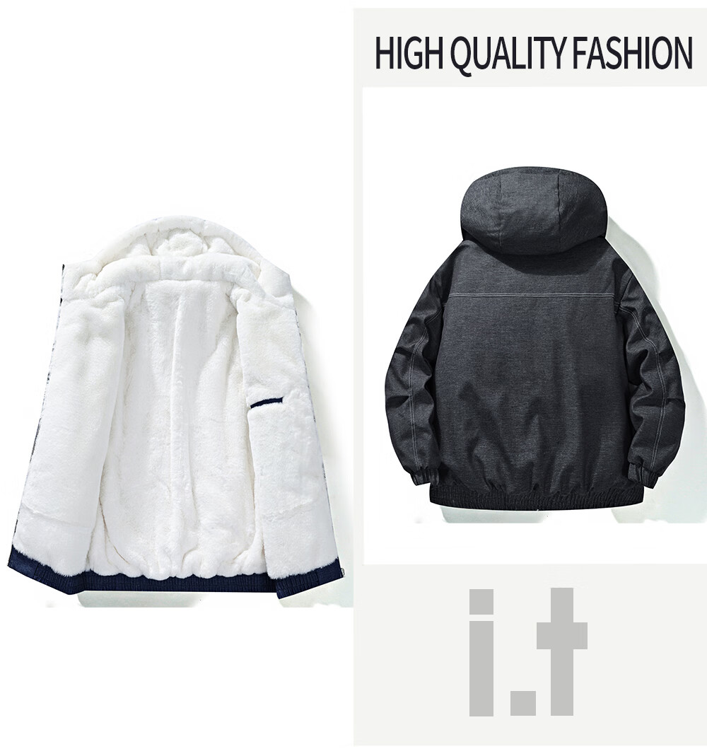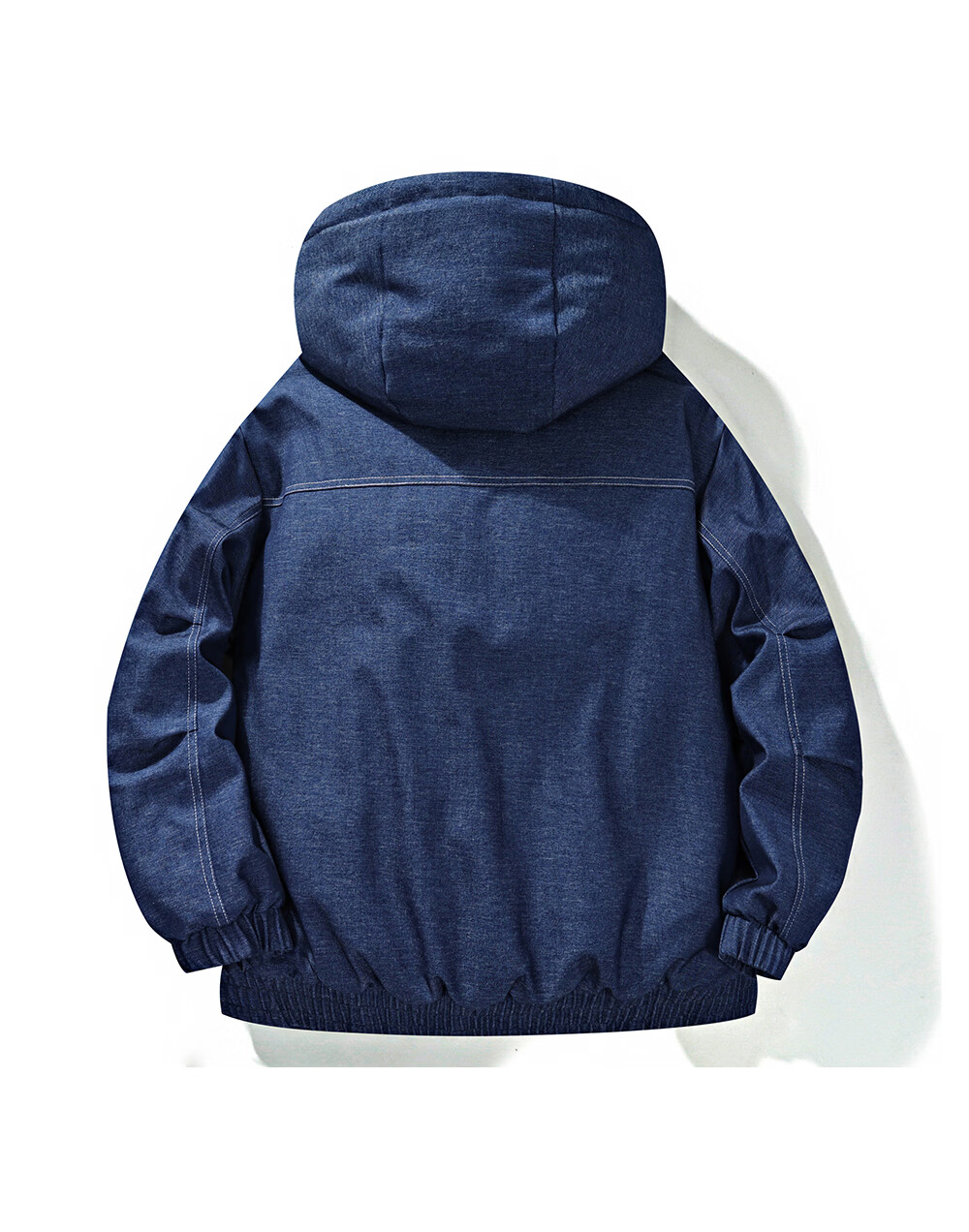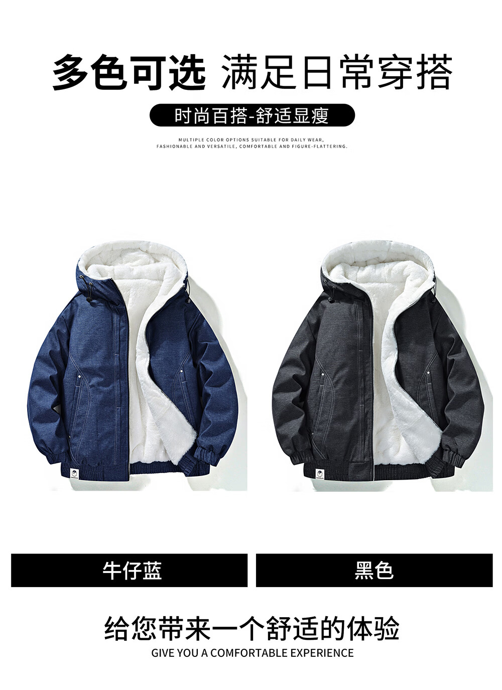 CHOCOOLATE it American trendy brand casual hooded cotton coat for men in winter plus velvet thickened loose warm casual versatile cotton jacket denim blue M recommended 90-110Jin Jin equals 0.5 kg
