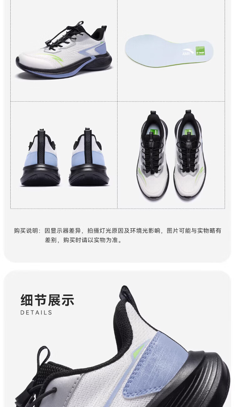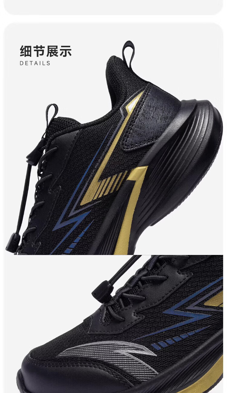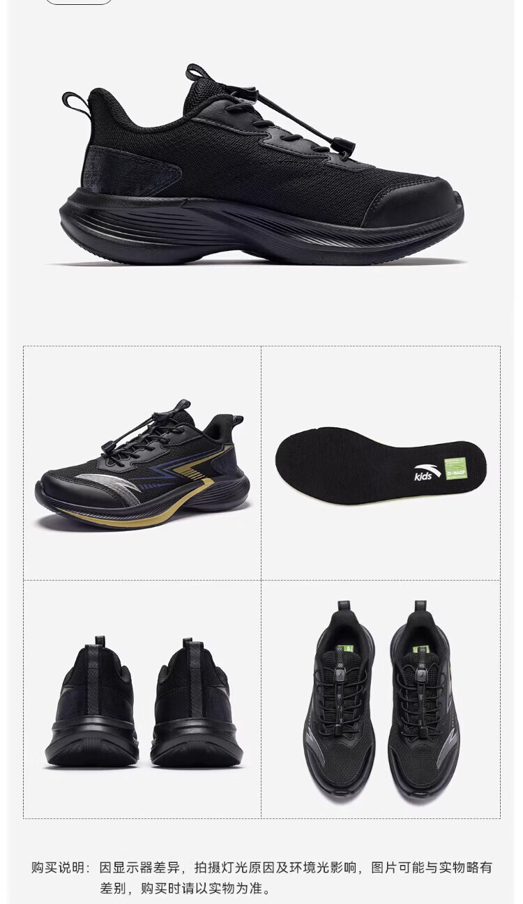 Anta Children's 12-15 Years Old Children's Shoes Junior High School Boys White Sports Casual Shoes Men's 2026 Spring and Autumn Running Shoes Black/Metallic Gold/Silver 33