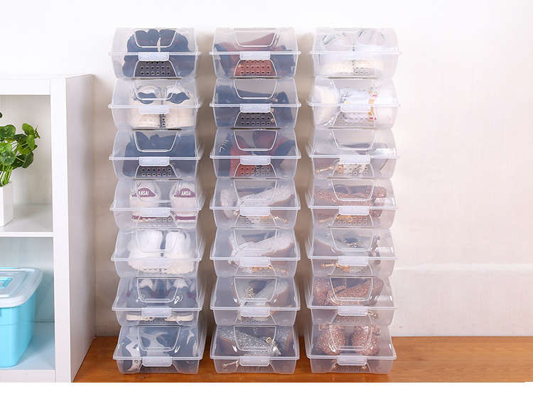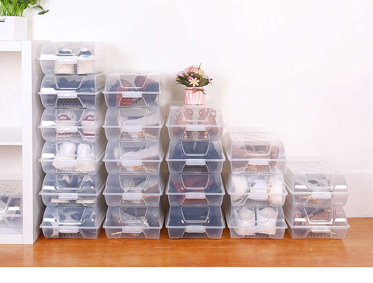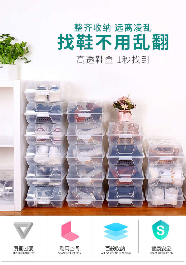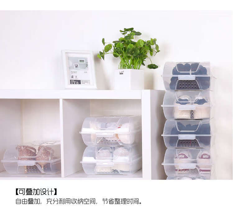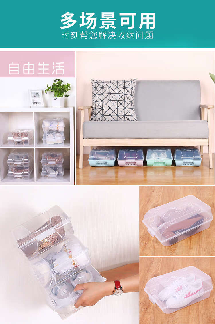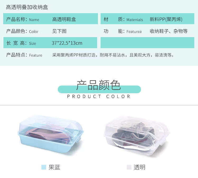 He Jiagong transparent shoe box drawer-type wardrobe shoe storage box car plastic shoe box shoe cabinet simple shoe rack blue bottom transparent shoe box 12 pieces 37x22.5x13cm