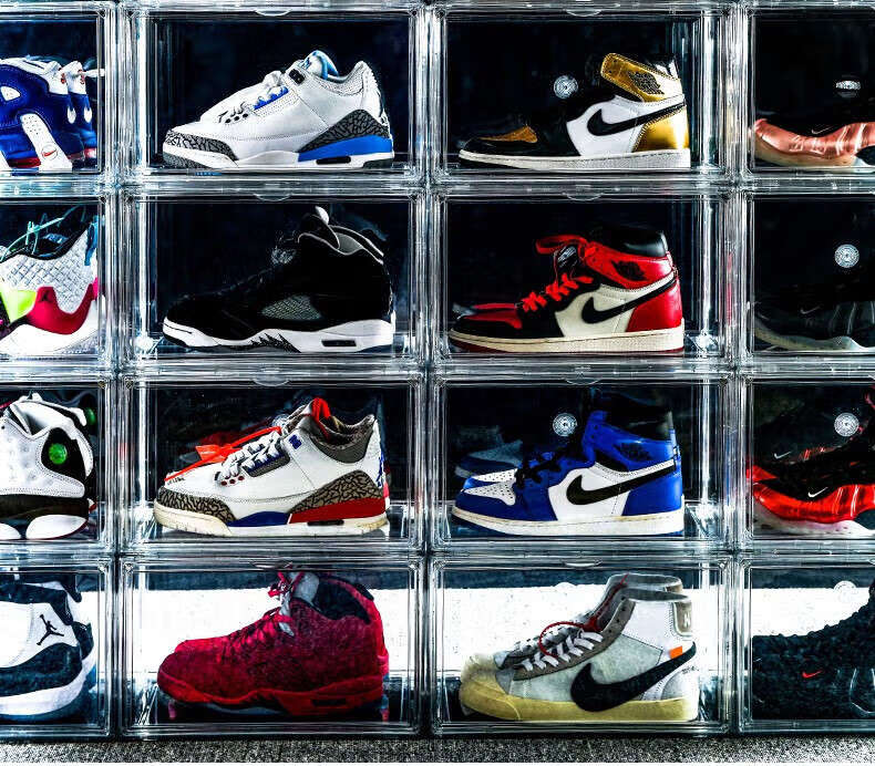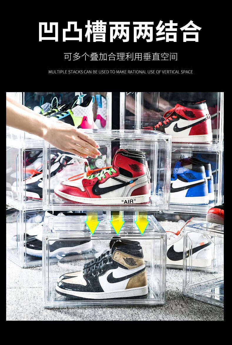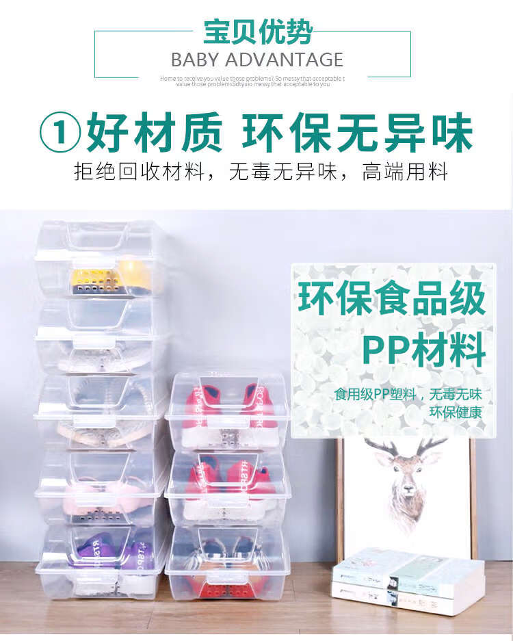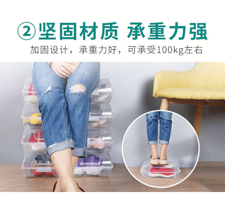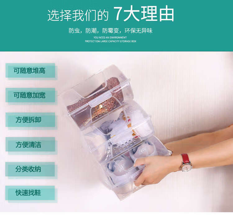 He Jiagong transparent shoe box drawer-type wardrobe shoe storage box car plastic shoe box shoe cabinet simple shoe rack blue bottom transparent shoe box 12 pieces 37x22.5x13cm