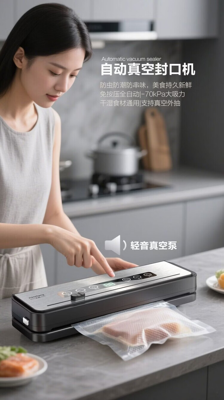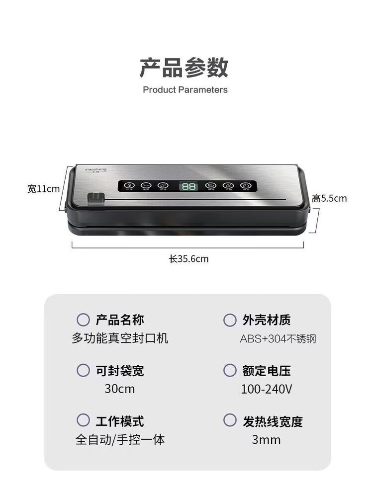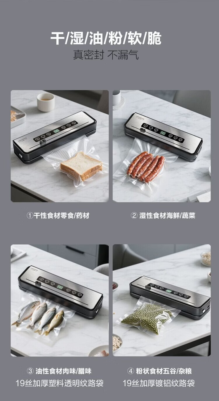 Miaopule stainless steel sterilization fully automatic vacuum sealing machine fresh-keeping household food packaging sealing and plastic sealing machine imported from Japan UV sterilization stainless steel version 6.0 hurricane high suction UV sterilization with 150 bags
