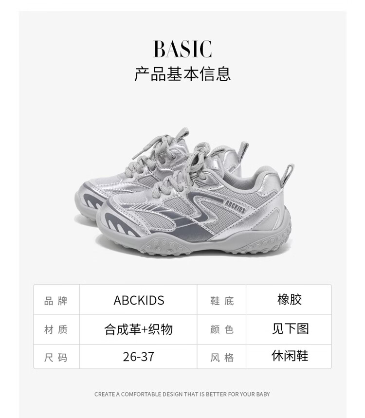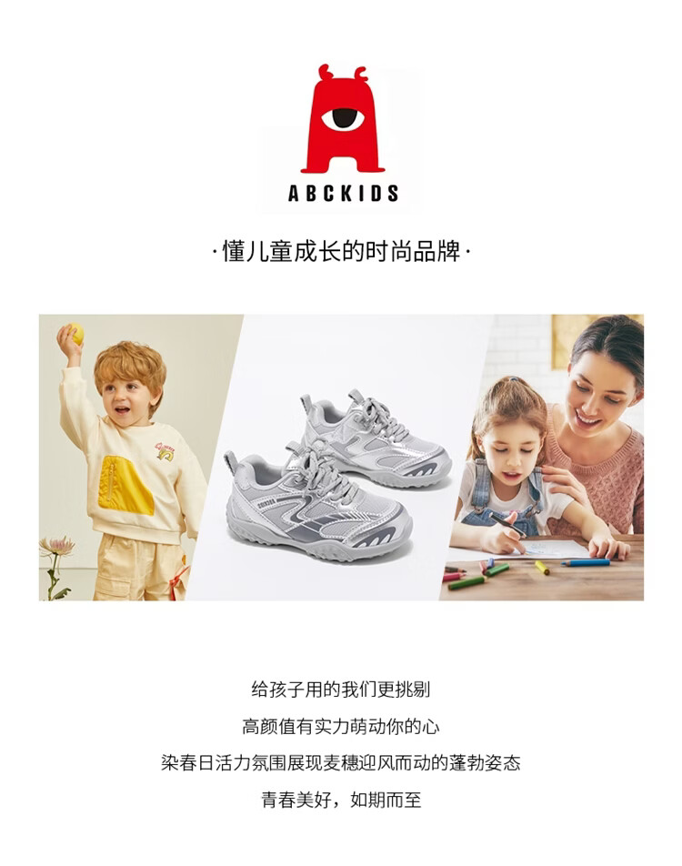 ABC KIDS children's shoes children's simple sports shoes 2026 spring new breathable running shoes for boys and girls, medium and large children's shoes casual shoes pink 26 inner length about 16.5cm