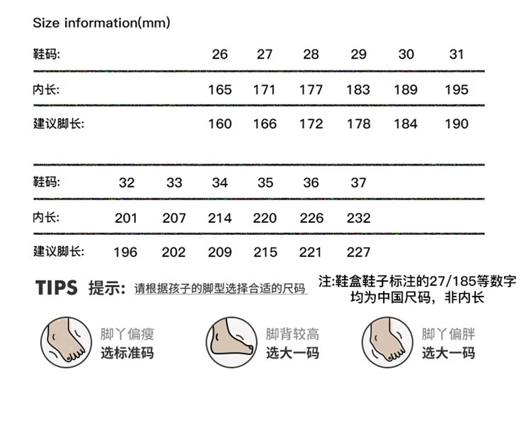 China (cm) 36 - 37 38 - 39 40 - 42 43 - 44 45 - 47