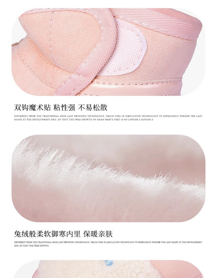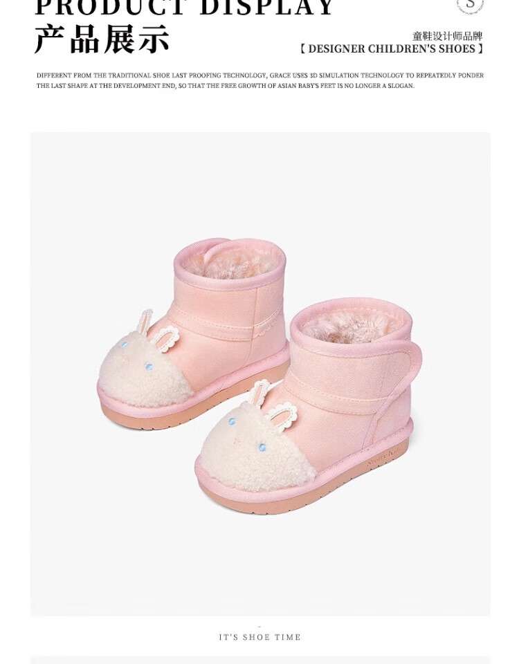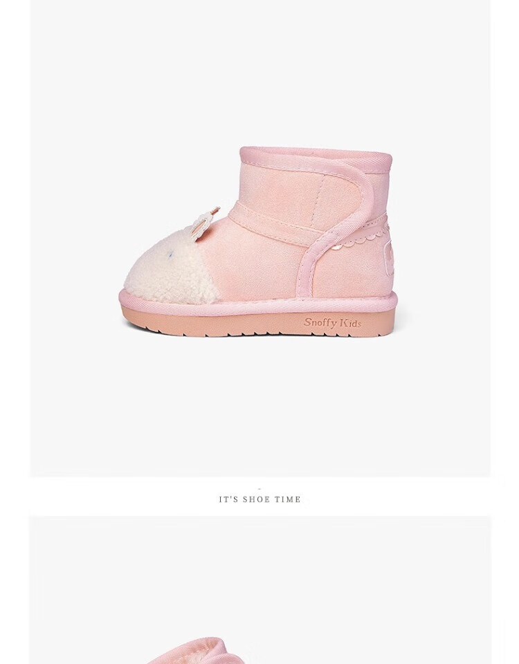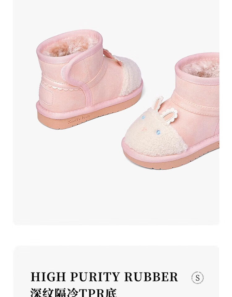 Snuffy Girls Snow Boots Winter New Style Plush Warm Anti-Slip Princess Baby Cotton Boots Sweet and Cute Pink 23