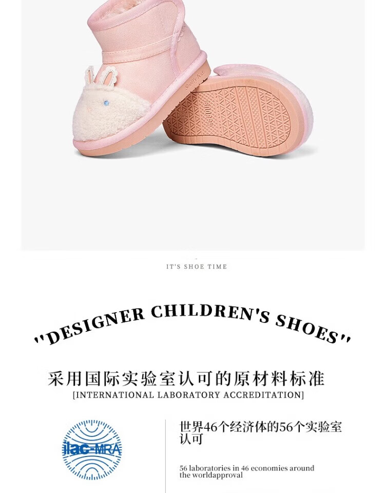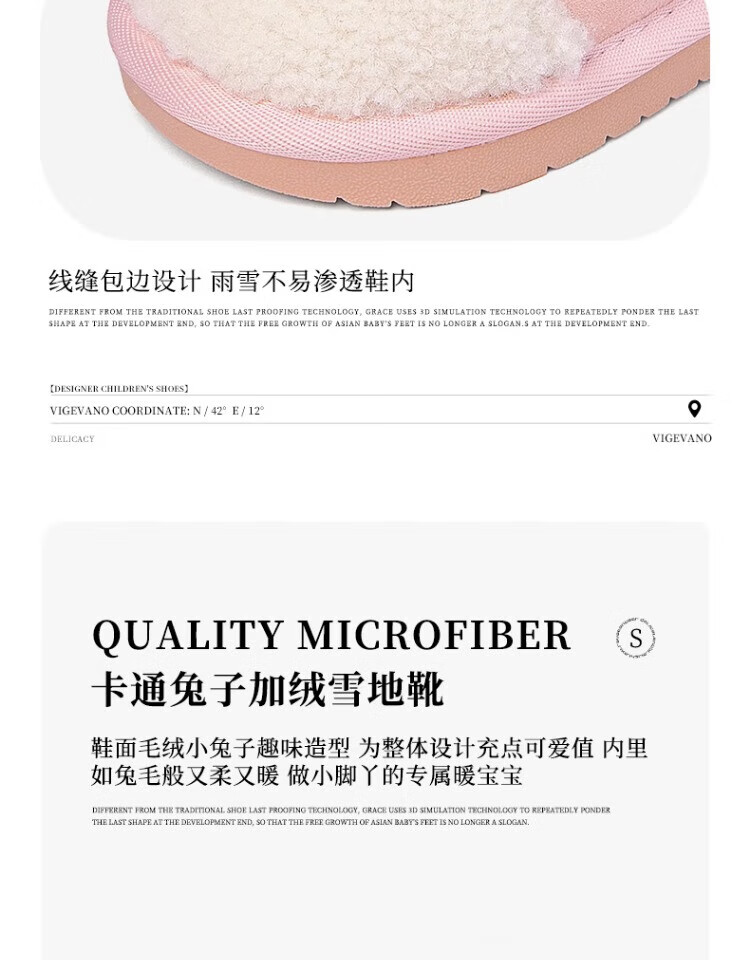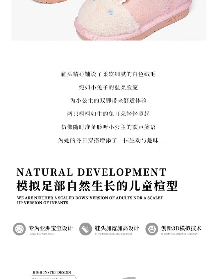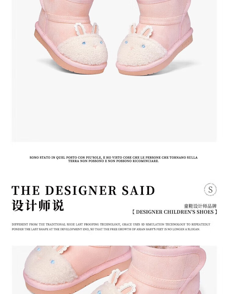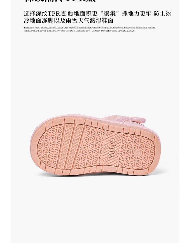 Snuffy Girls Snow Boots Winter New Style Plush Warm Anti-Slip Princess Baby Cotton Boots Sweet and Cute Pink 23