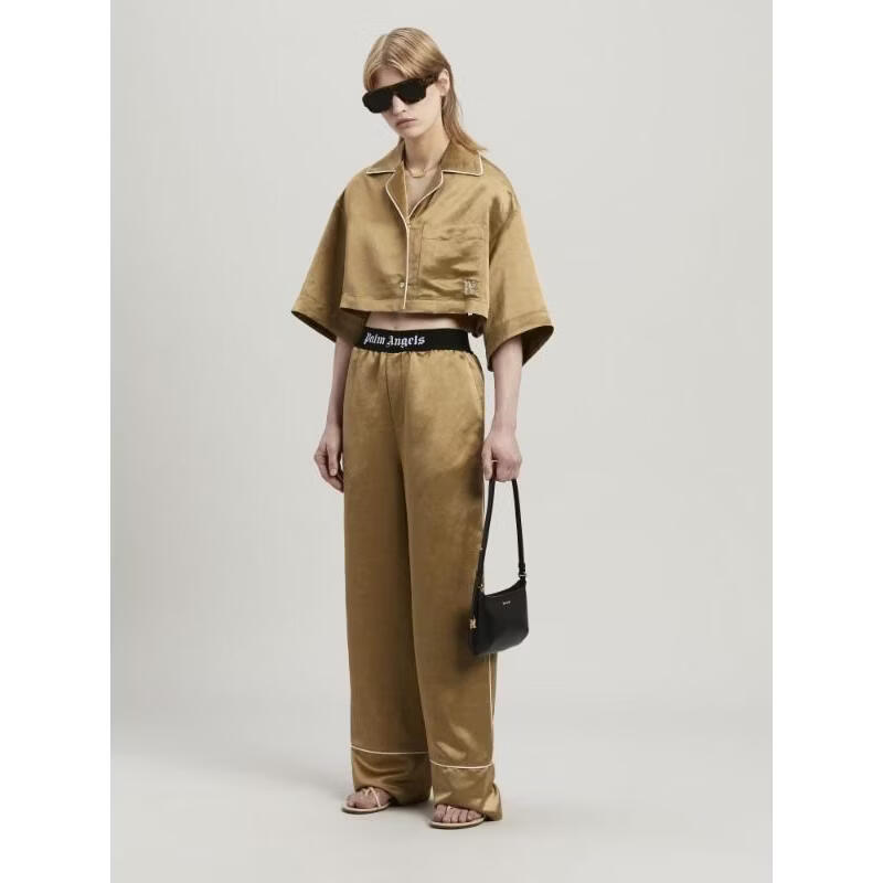 PALM ANGELS women's shirt warm breathable cotton short-sleeved daily home jacket casual nude color one size | IT-40