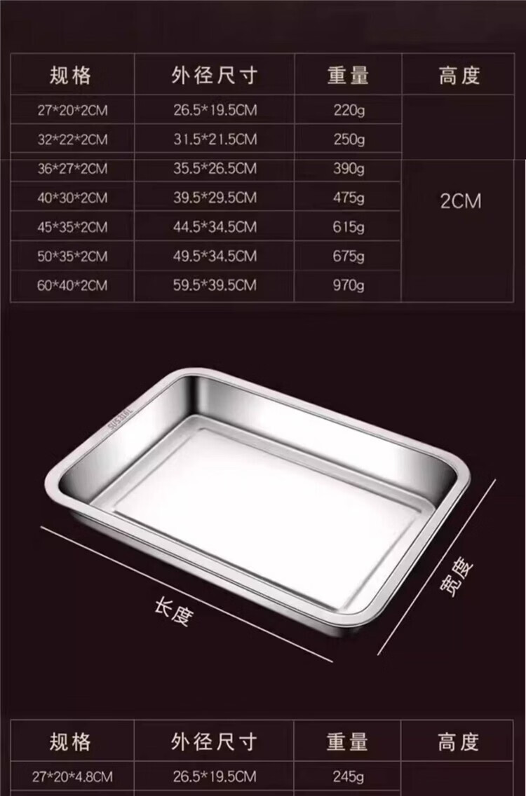 Miaopule food grade 316 stainless steel tray rectangular plate household square plate grilled fish barbecue plate iron baking pan 304 oven 32x22x2cm thickened 316 stainless steel shallow plate