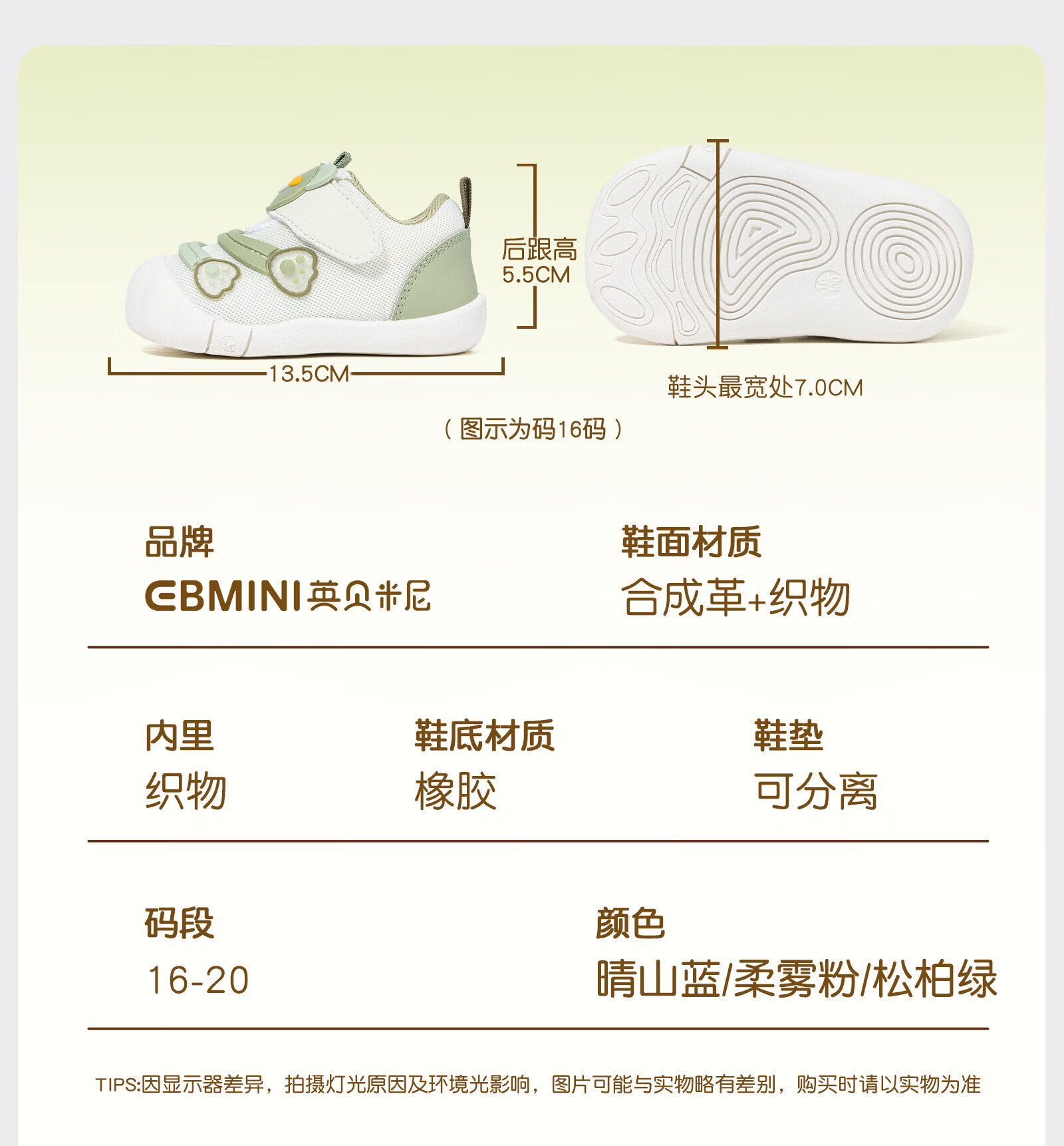 Inbemini children's toddler shoes 2026 spring new cute functional shoes for baby girls boys soft bottom baby shoes Qingshan blue 18 inner length 13.4CM suitable for feet around 12.7CM