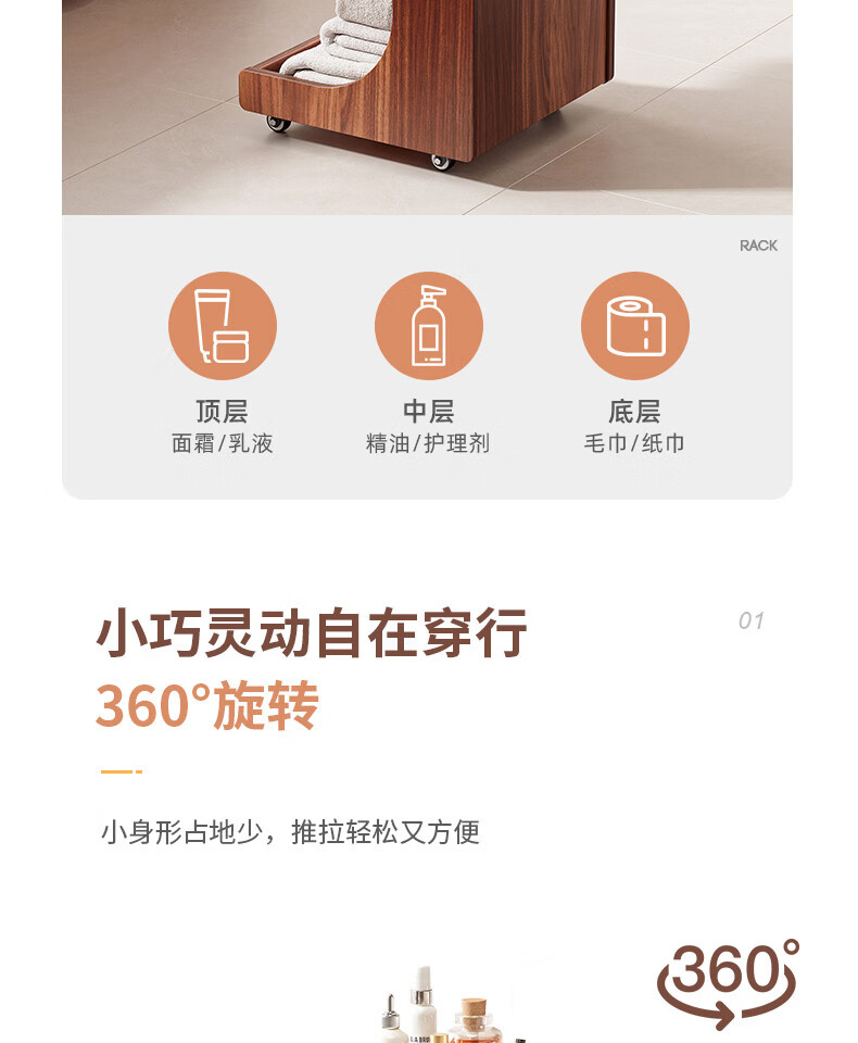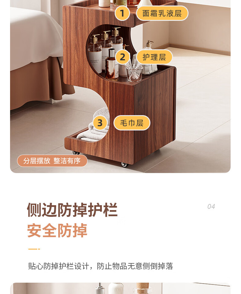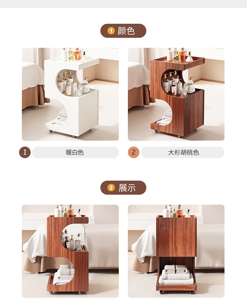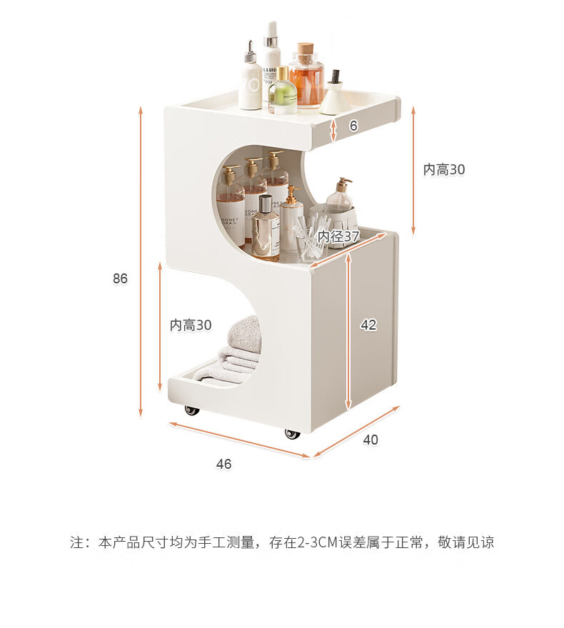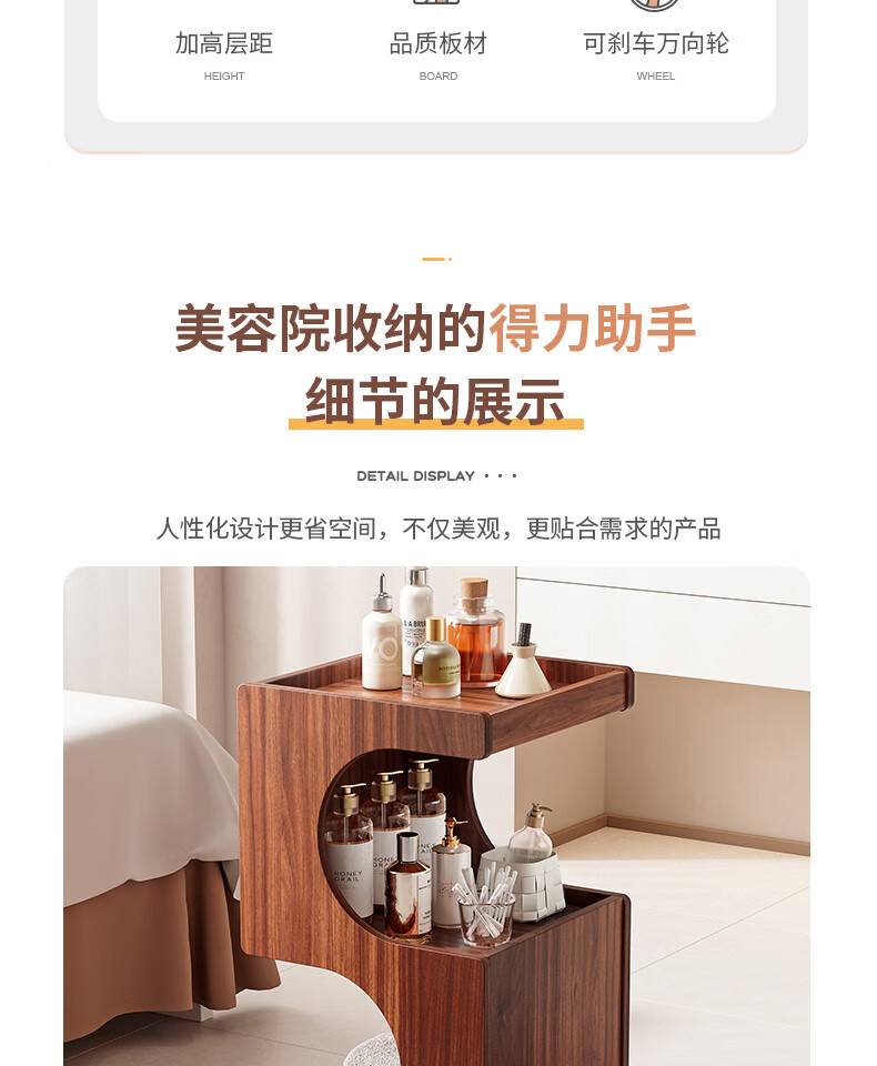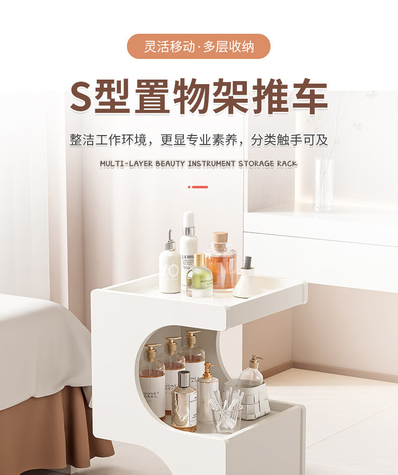 Special trolley for Yong Huan Beauty Salon, wooden movable care instrument storage rack, cosmetic hand push advanced tool cart, warm white 46x40x86CM, official standard configuration