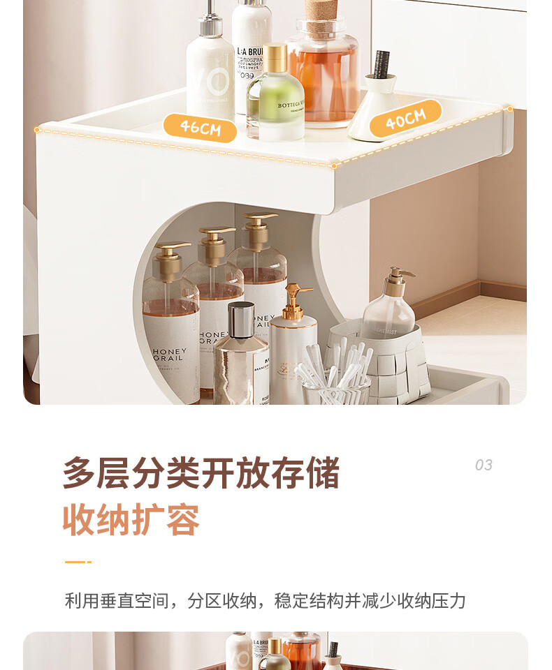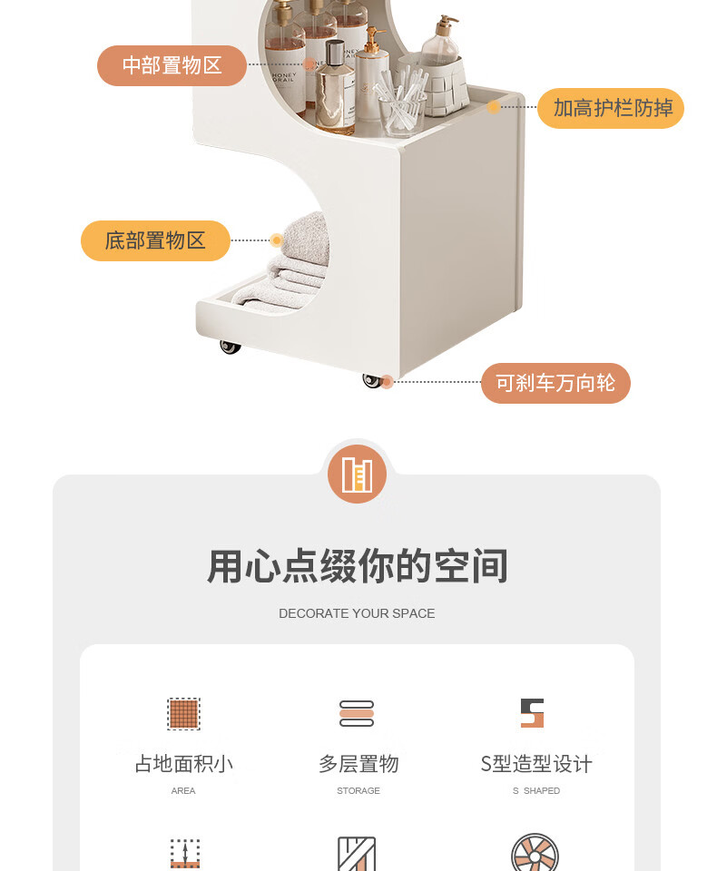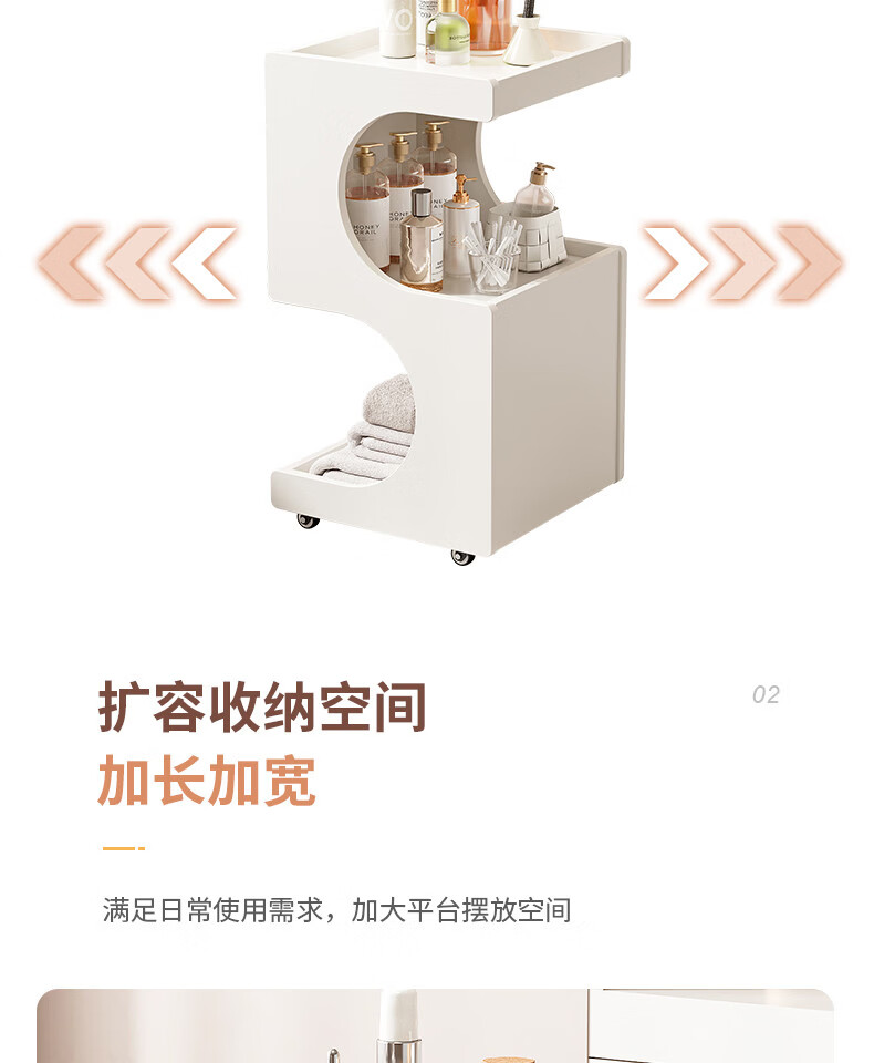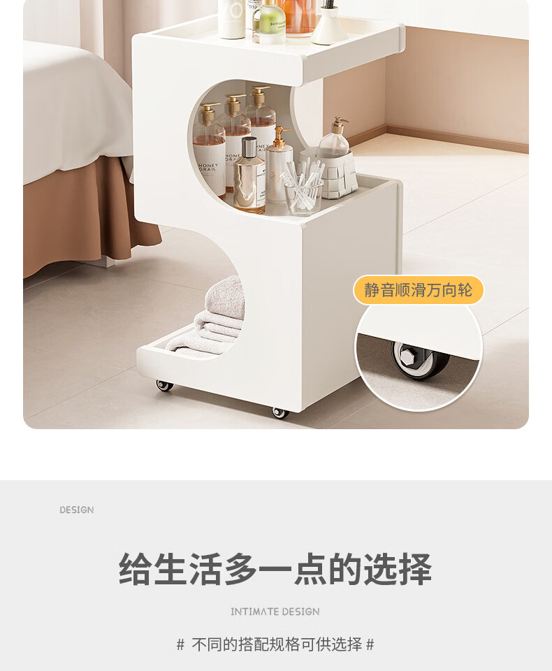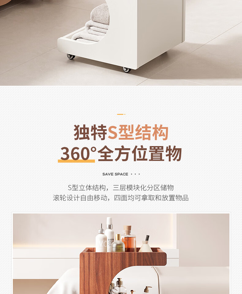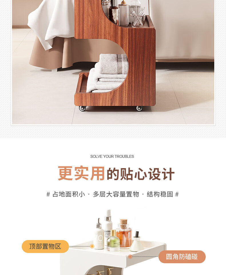 Special trolley for Yong Huan Beauty Salon, wooden movable care instrument storage rack, cosmetic hand push advanced tool cart, warm white 46x40x86CM, official standard configuration