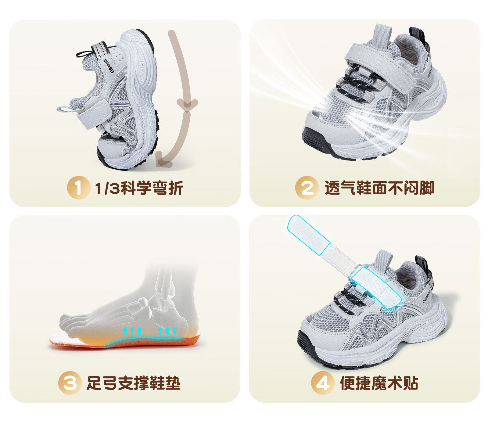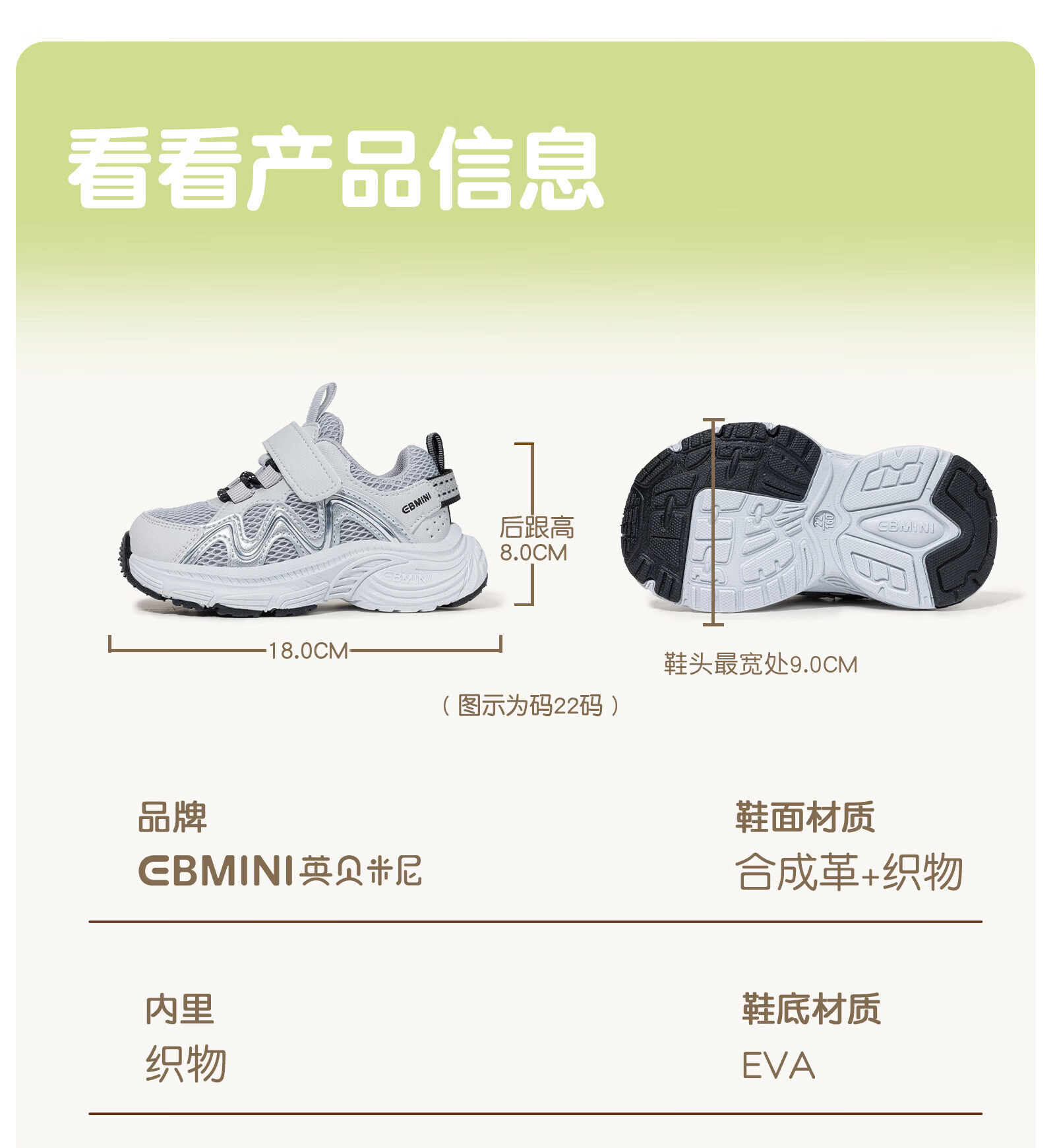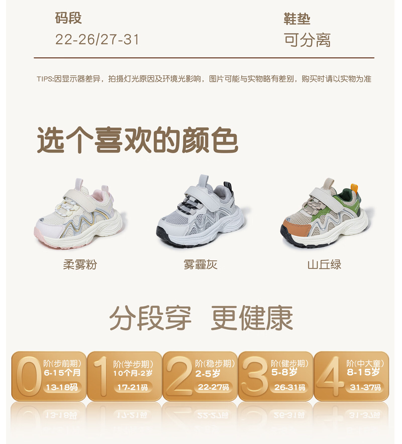 Inbemini Children's Sports Shoes 2026 Spring New Cushioning Dad's Shoes Boys' Girls' Shoes Soft Mist Powder 23 Inner Length 14.6CM Suitable for Feet Length Around 13.9CM