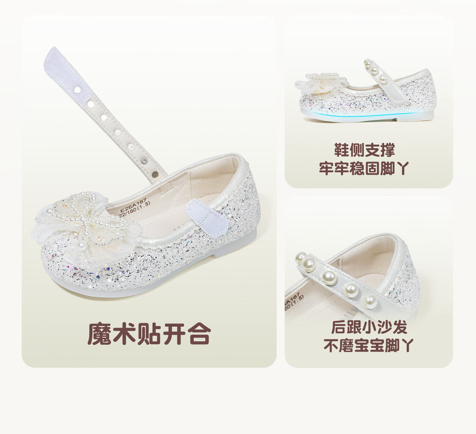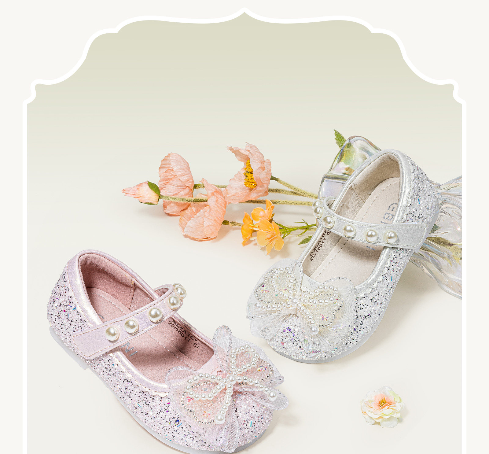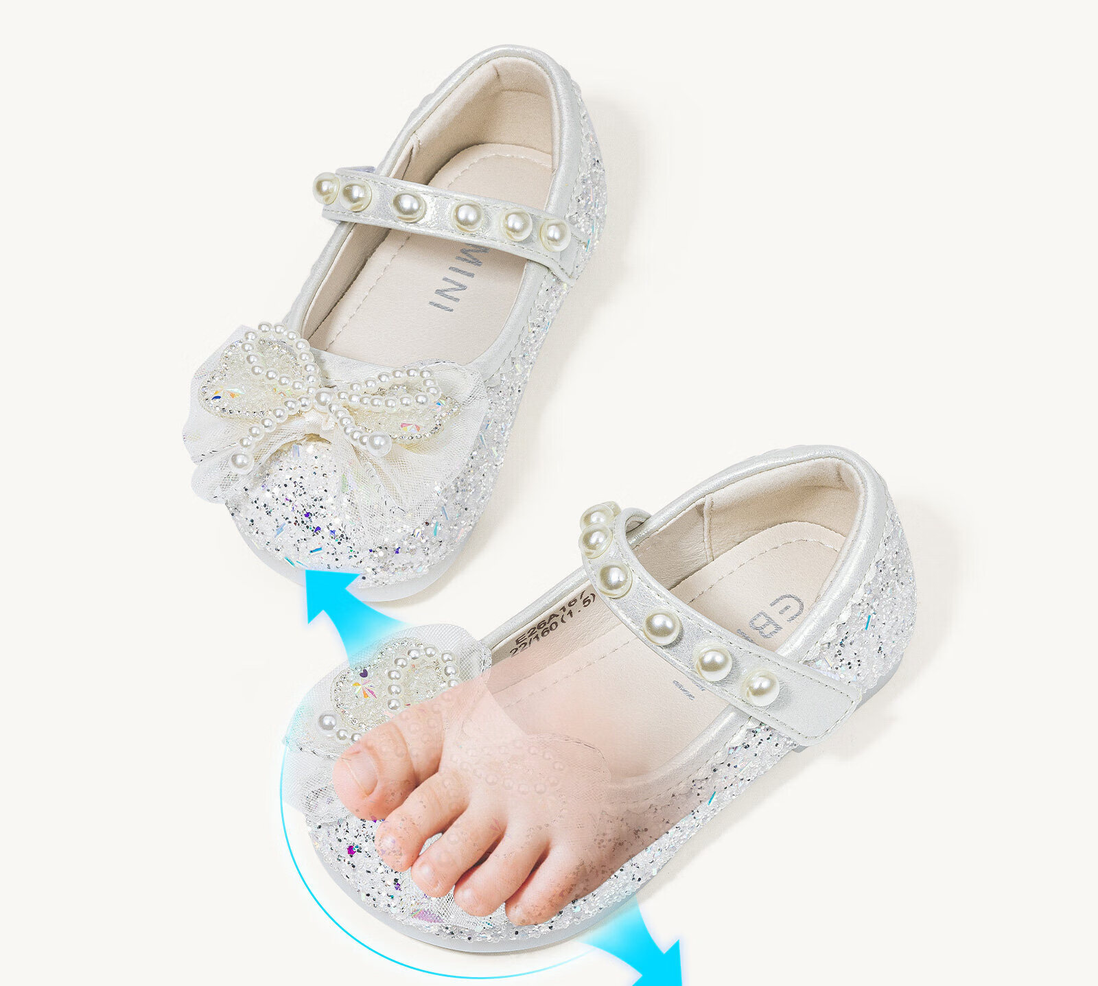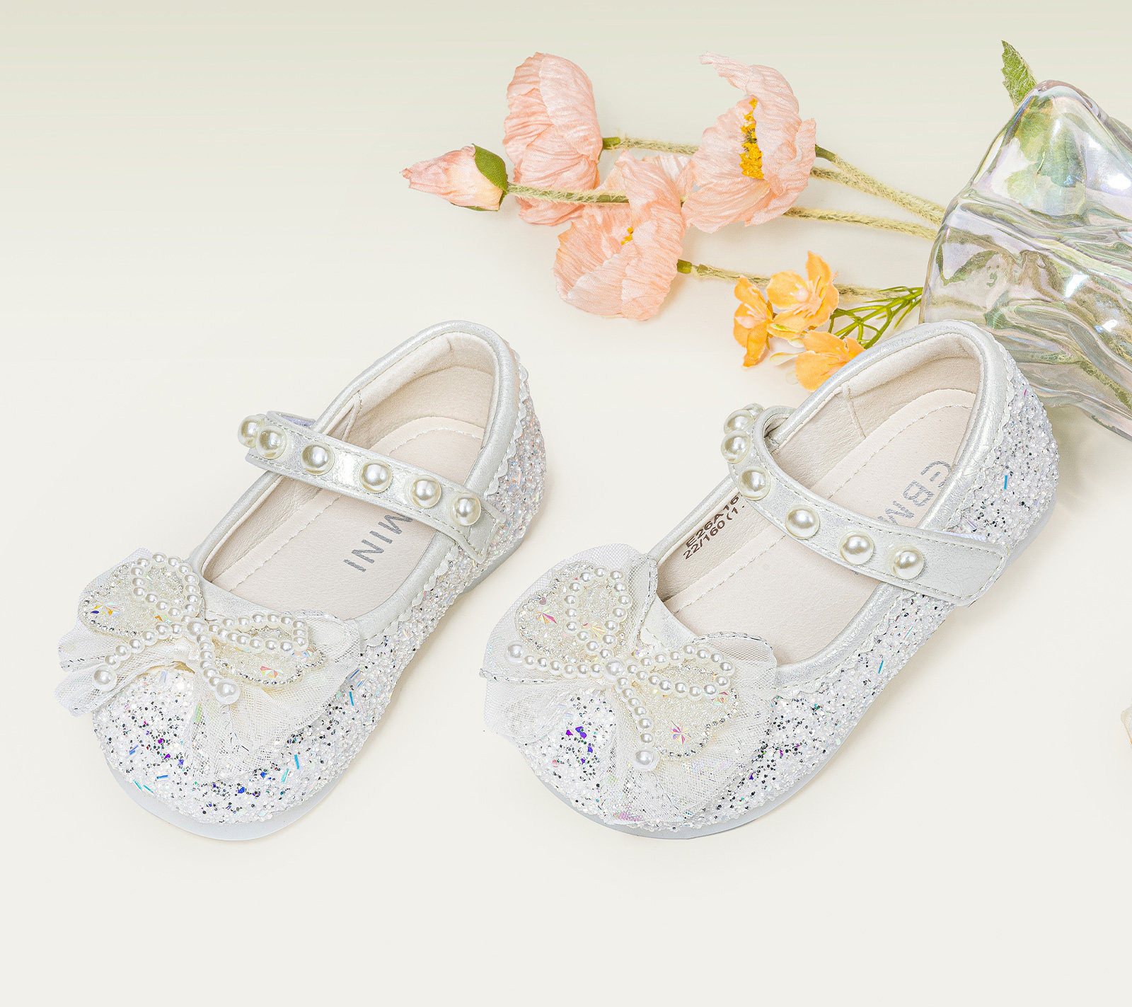 Inbemini girls' crystal shoes 2026 spring new bow versatile baby girl's performance princess shoes dream pink 22 inner length 13.9CM suitable for feet around 13.2CM