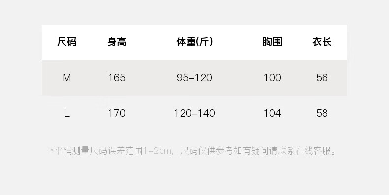 China (cm) 160-165/84-86 165-170 / 88-90 167-172 / 92-96 168-173 / 98-102 170-176 / 106-110