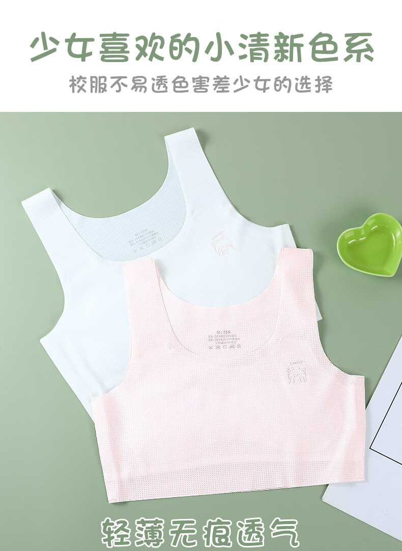 Jeanswest girls' underwear development period 10-year-old girl's bra primary school children 7-12 years old girl's first stage thin vest white + white + white (three-piece combination) M 75A (38-55Jin Jin is equal to 0.5 kg)