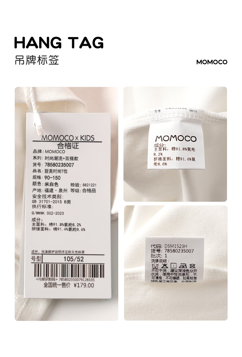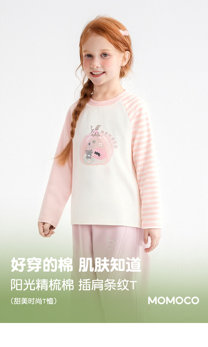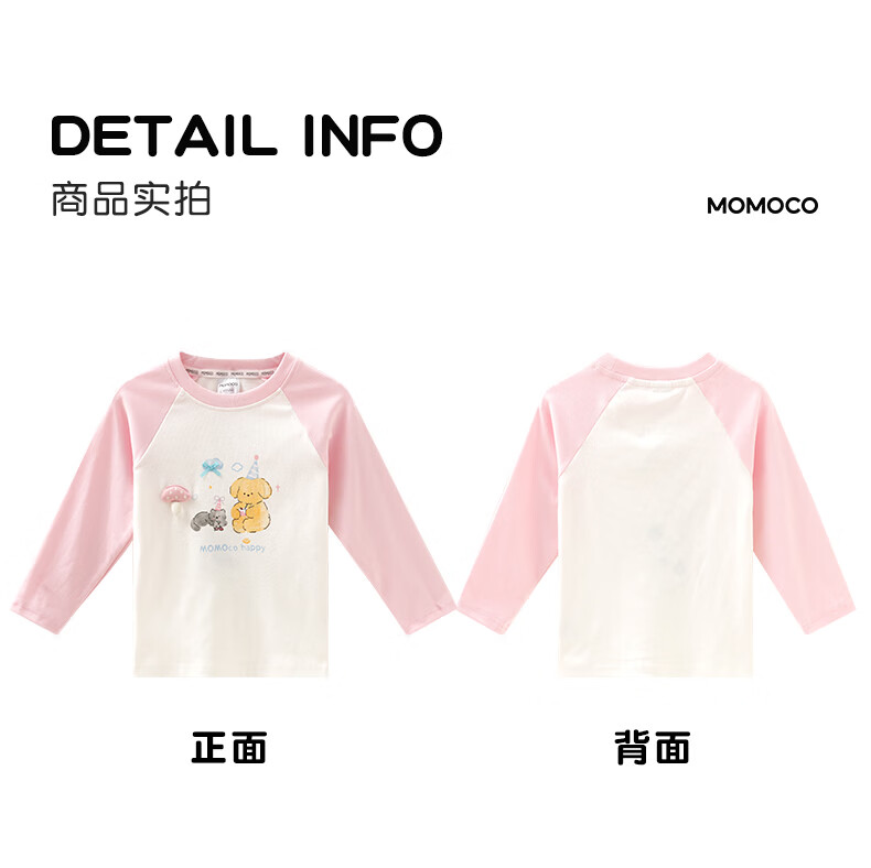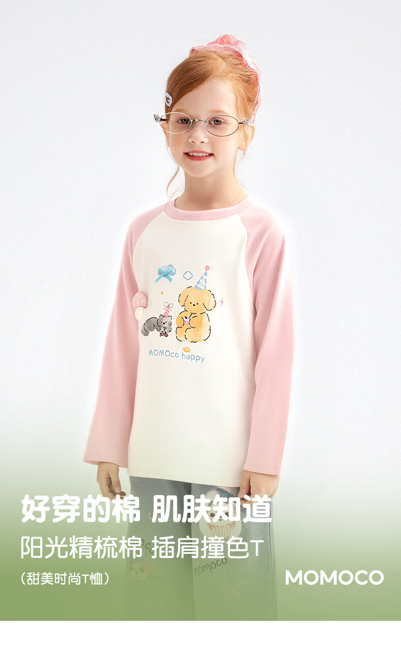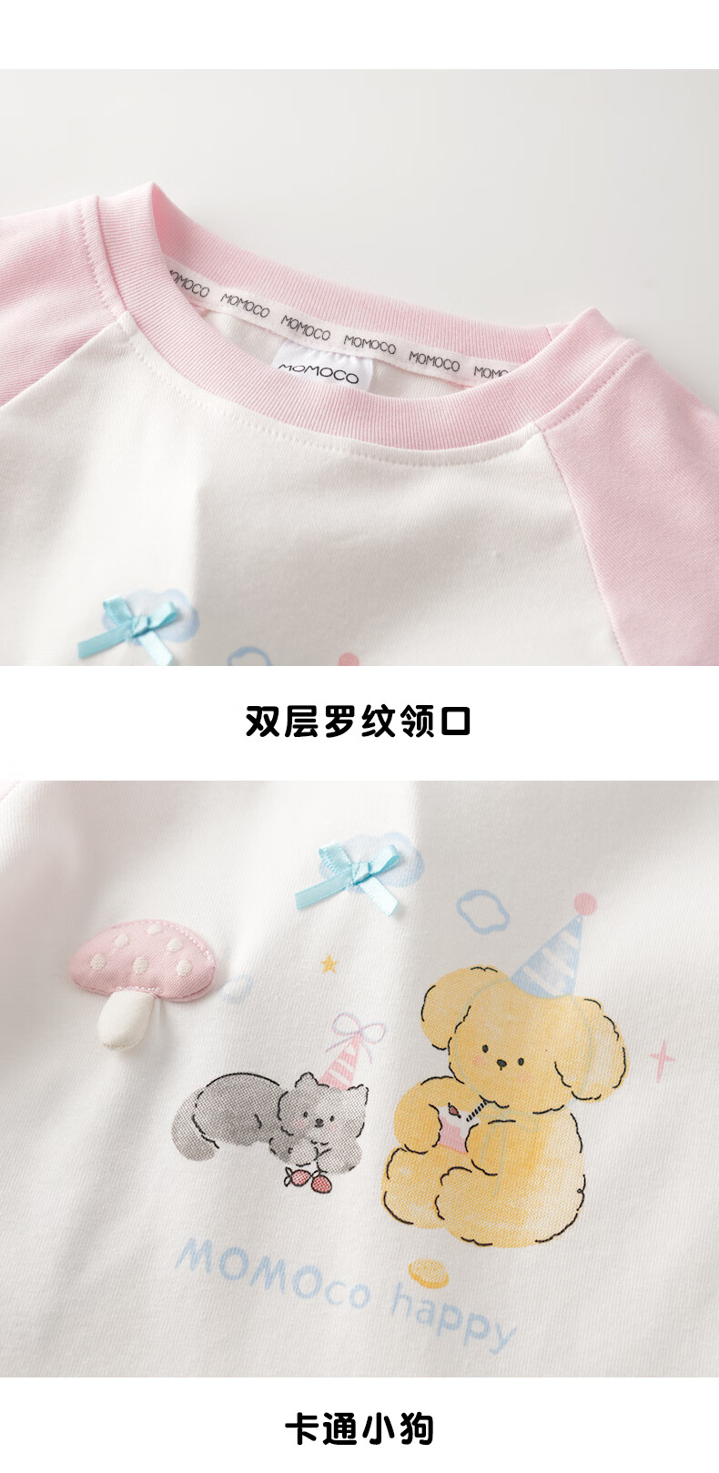 Mamie Maka (MOMOCO) children's clothing girls long-sleeved T-shirt 2026 spring style medium and large children sweet and fashionable T-shirt off-white 006 90