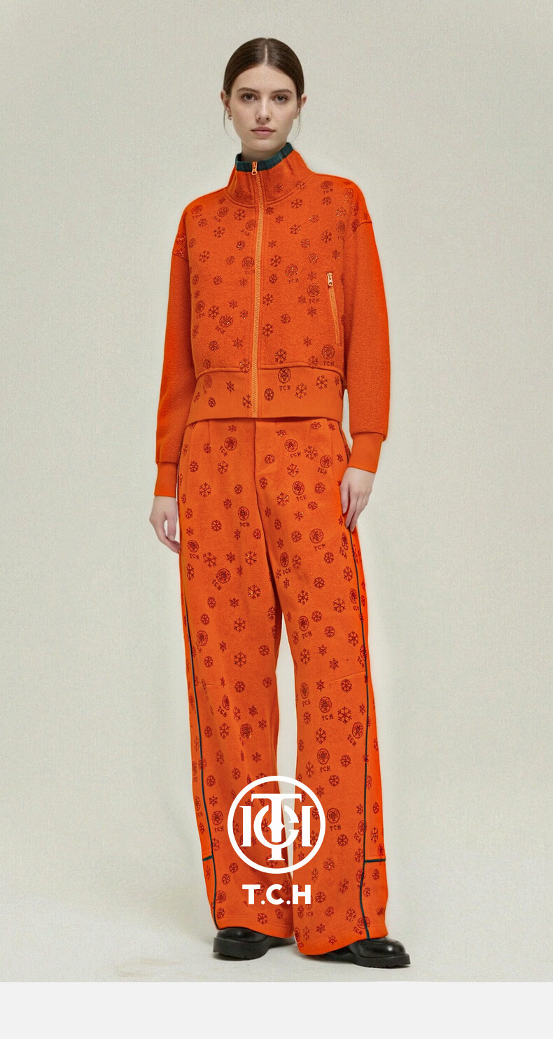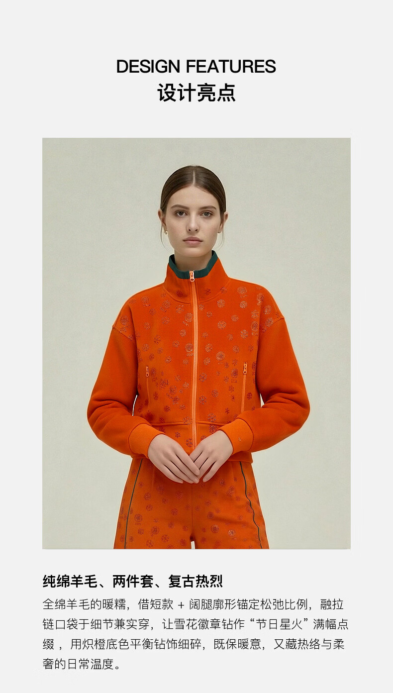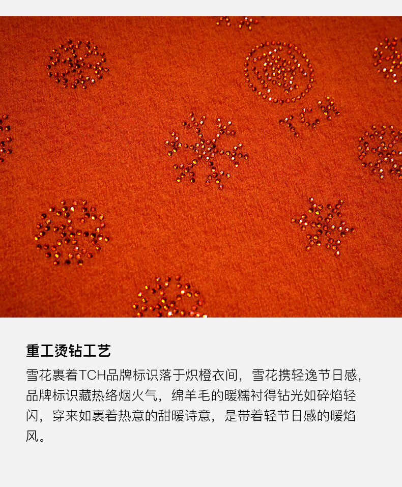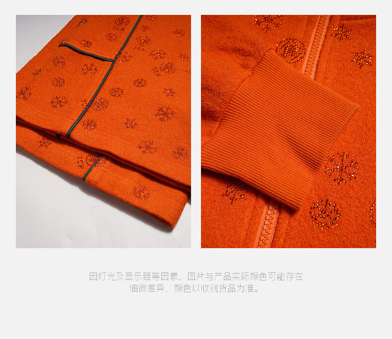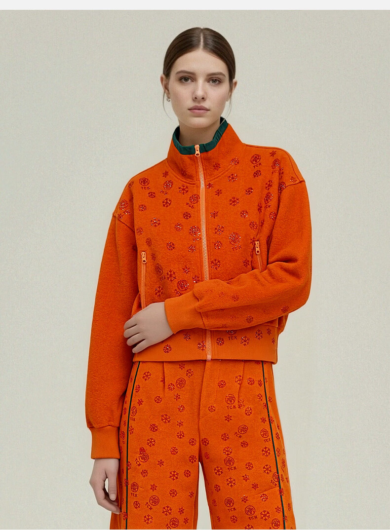 TCH Pure Sheep Wool Suit Women's 26 Years Early Spring Fashion Full Diamond Versatile Temperament Slim Noble Quiet Luxurious Two-piece Set Orange M