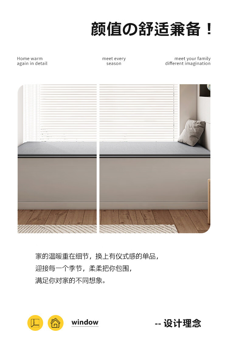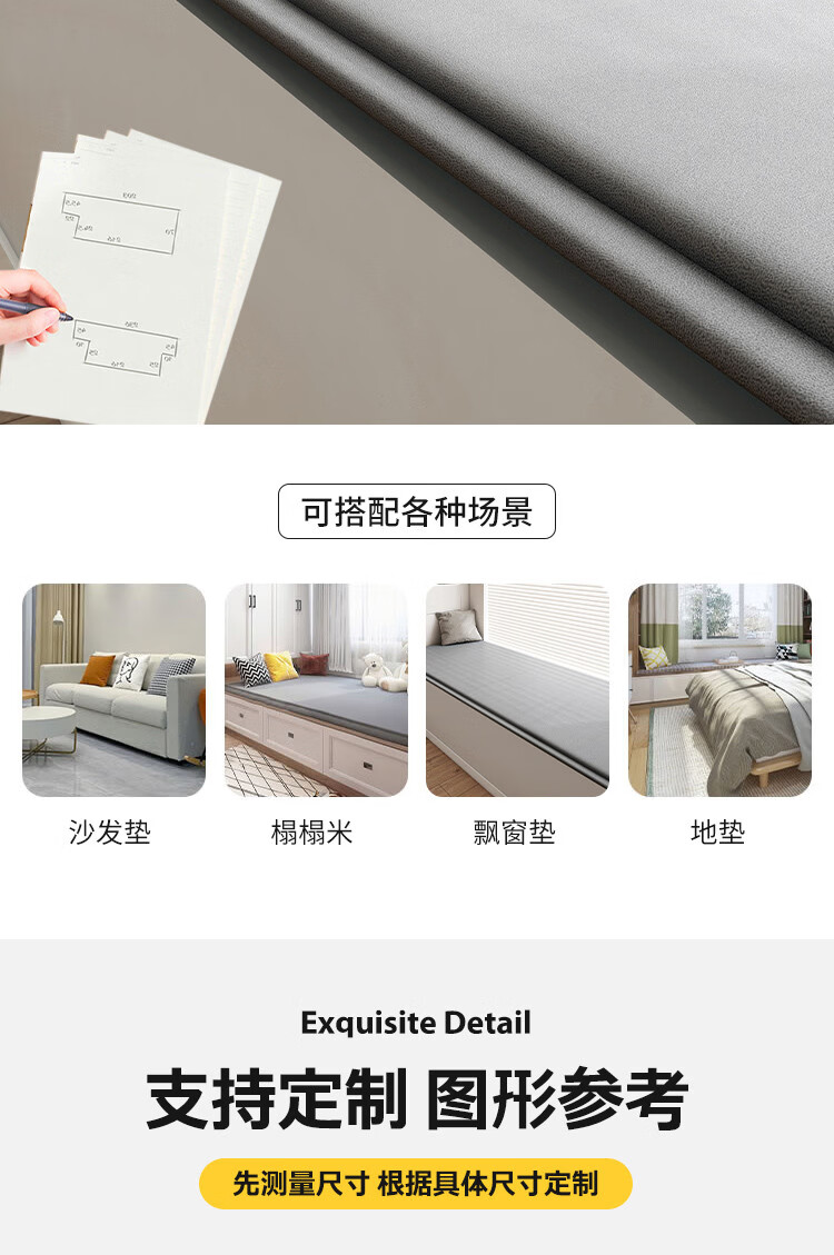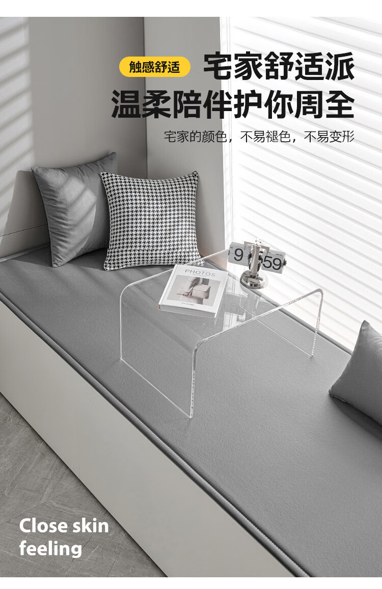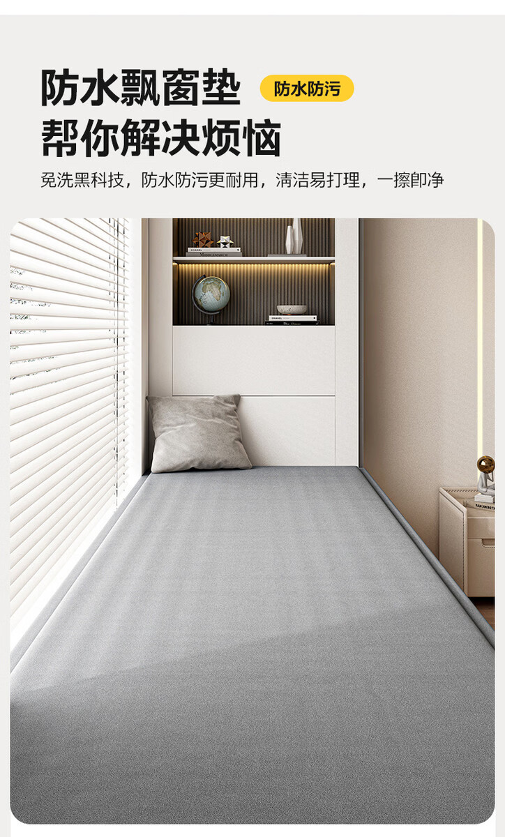 Wing Fantasy waterproof technology cloth bay window mat window sill mat new anti-slip tatami mat custom-made balcony seat cushion custom-made Lake Blue (skin-friendly chenille) 80x180cm