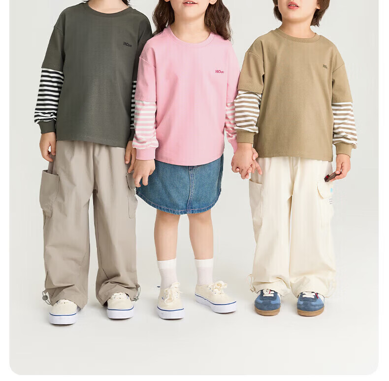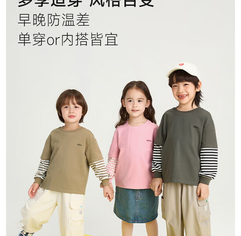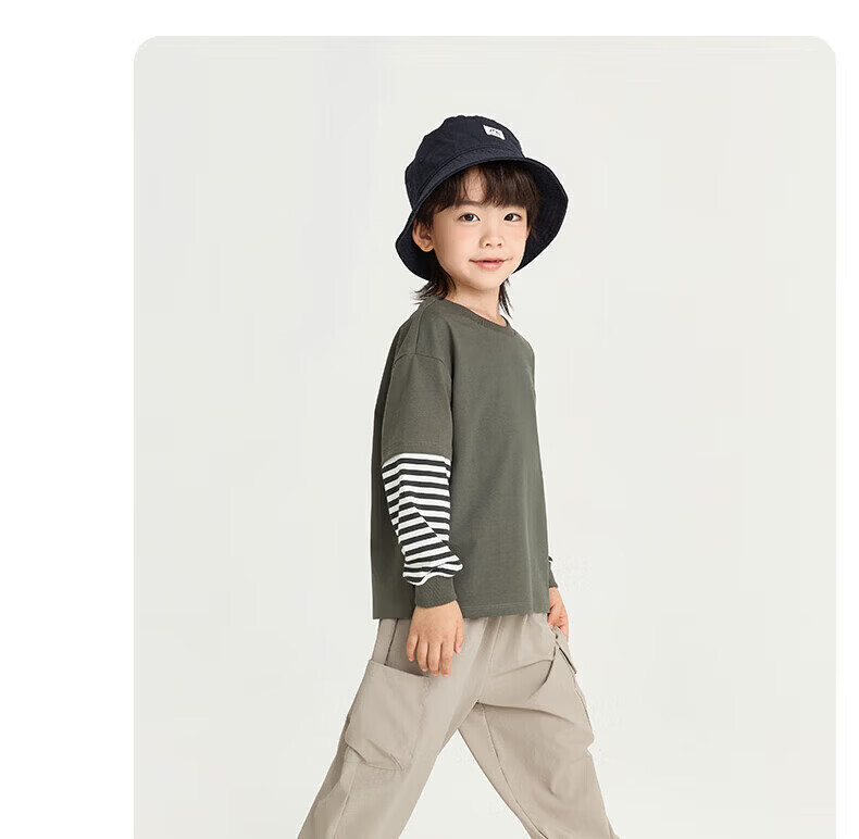 Nido Bear winter new children's T-shirt boys and girls contrasting stripes long-sleeved baby casual round neck spring and autumn deep space gray 80 cm