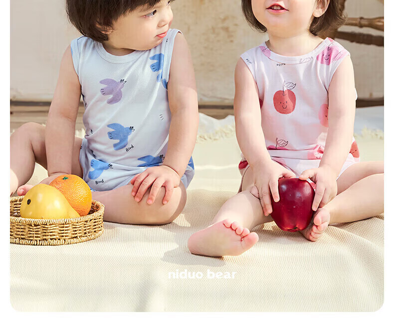 Nido Bear summer new baby jumpsuit for men and women, baby crawling suit, newborn harem bag, vest, pink apple 66cm