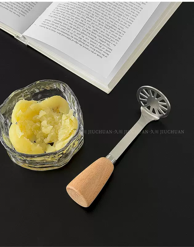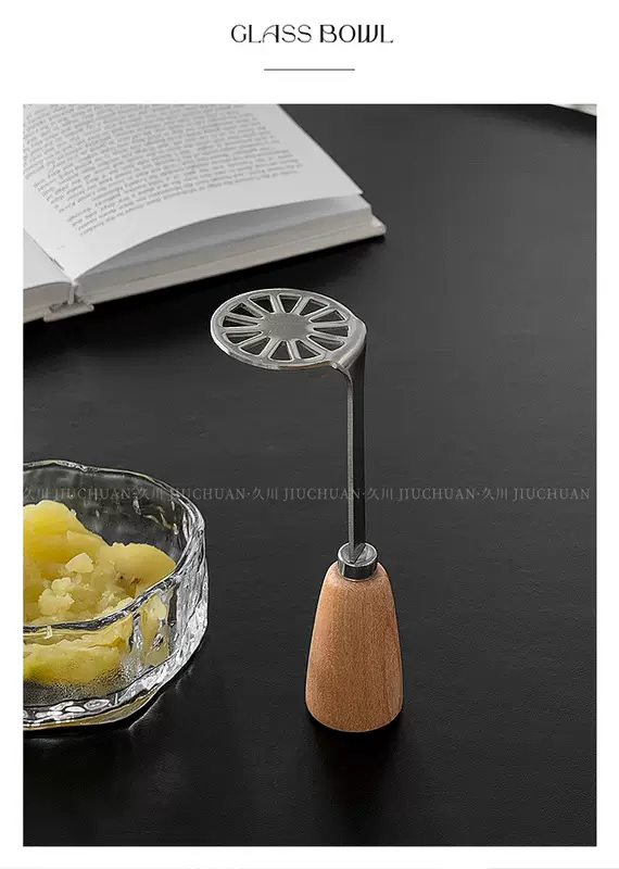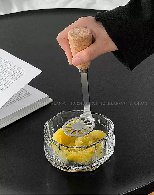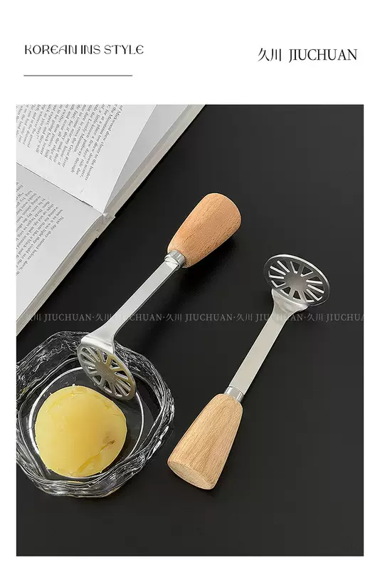 Yusenyi ins style stainless steel wooden handle mud press kitchen potato sweet potato taro mud press tool food supplement cooking artifact one pack 1ml one pack