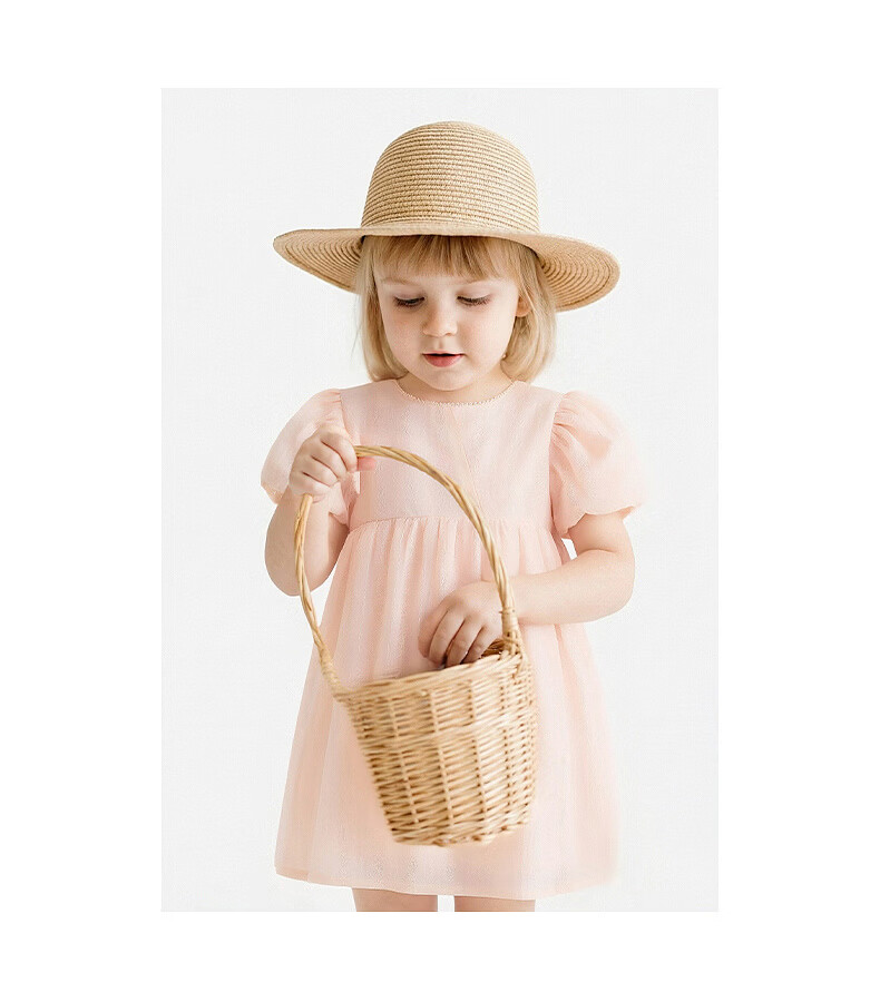 British haute couture series children's skirt summer new pink princess skirt baby girl short-sleeved dress pink 120 cm