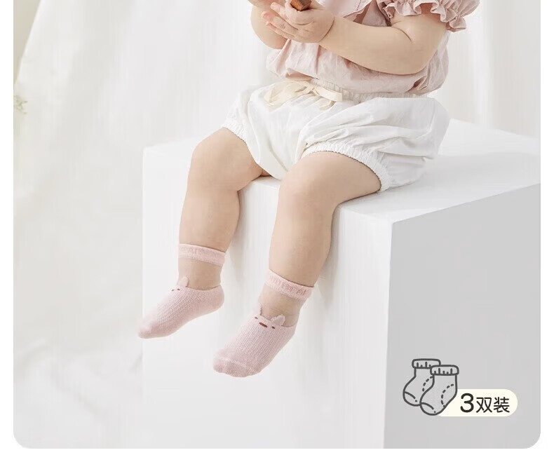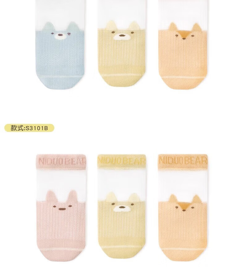 Nido Bear Baby Socks Summer Thin Cotton Socks Boneless Infant Socks Male and Female Baby Socks Ice Stockings S3101A Ice Stockings 3 Pairs 6-12 Months (Suitable for Feet Length 9-11cm)