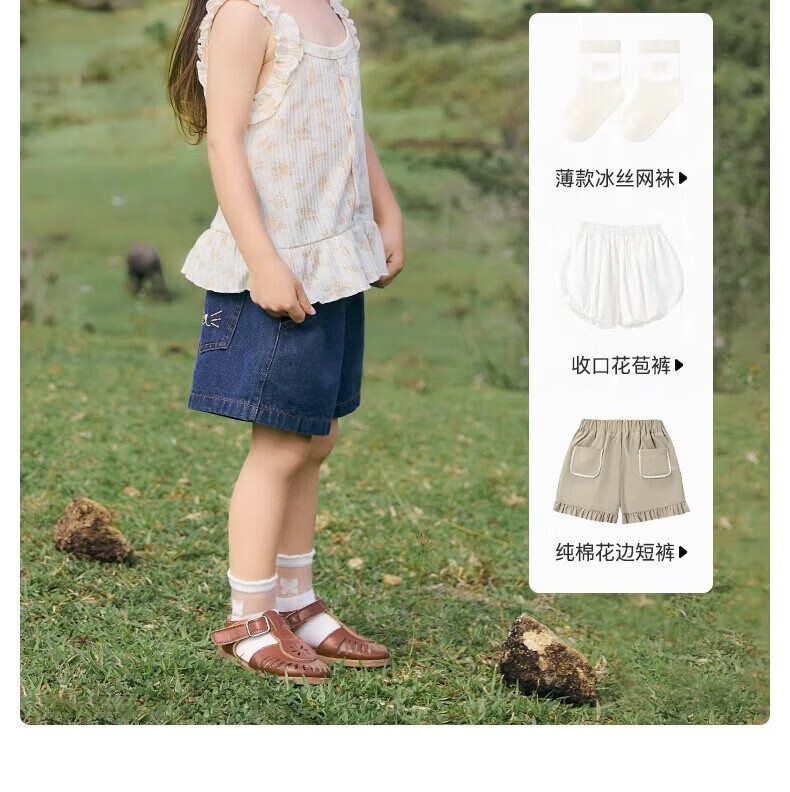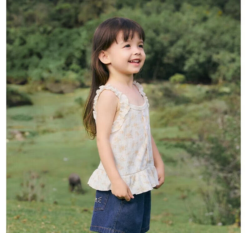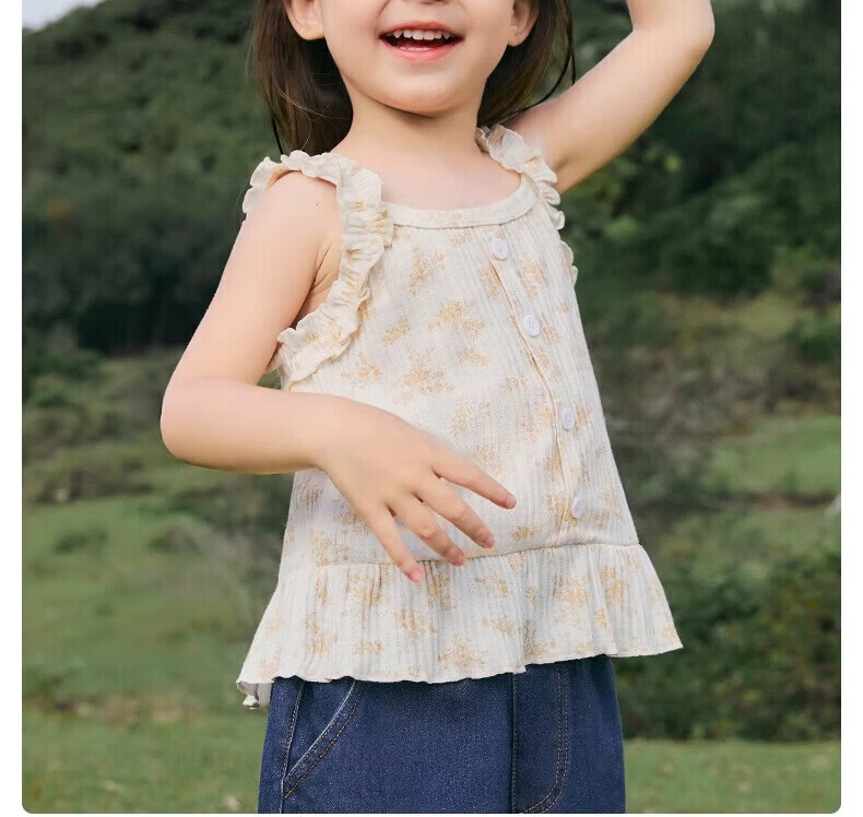 Nido Bear summer new style girls sling floral baby girl lace sling elastic breathable sweet top thin orange floral 80 cm