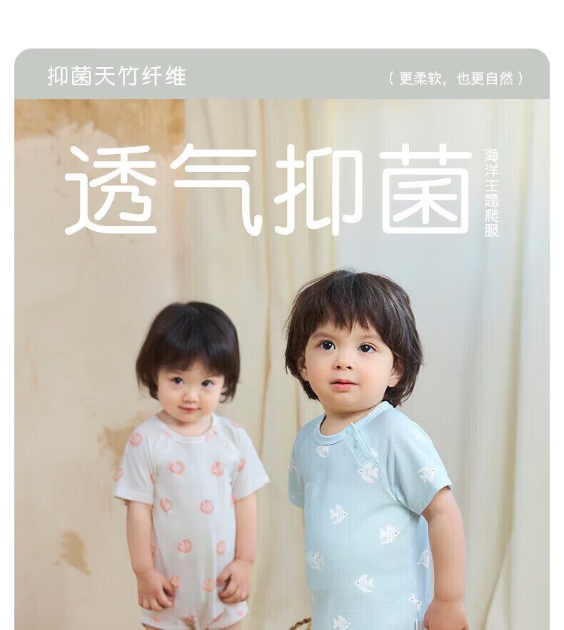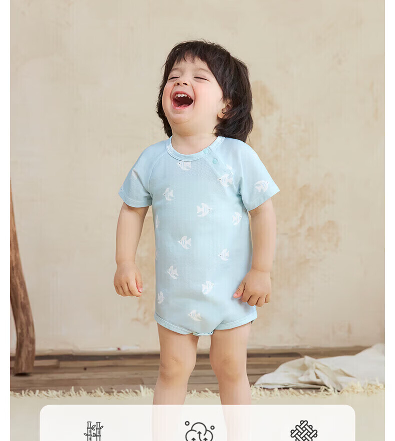 Nido Bear's new summer baby onesie, baby bag, men's and women's romper, breathable short-sleeved bamboo fiber, lively hairtail 73cm