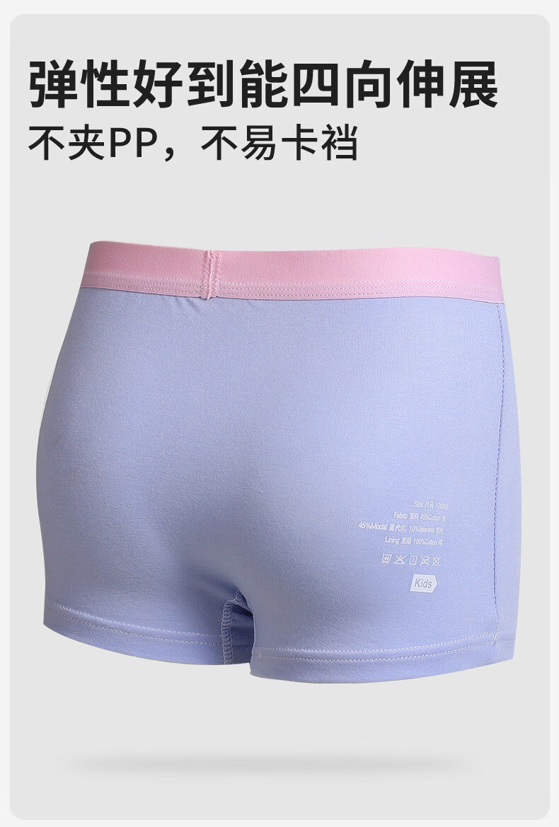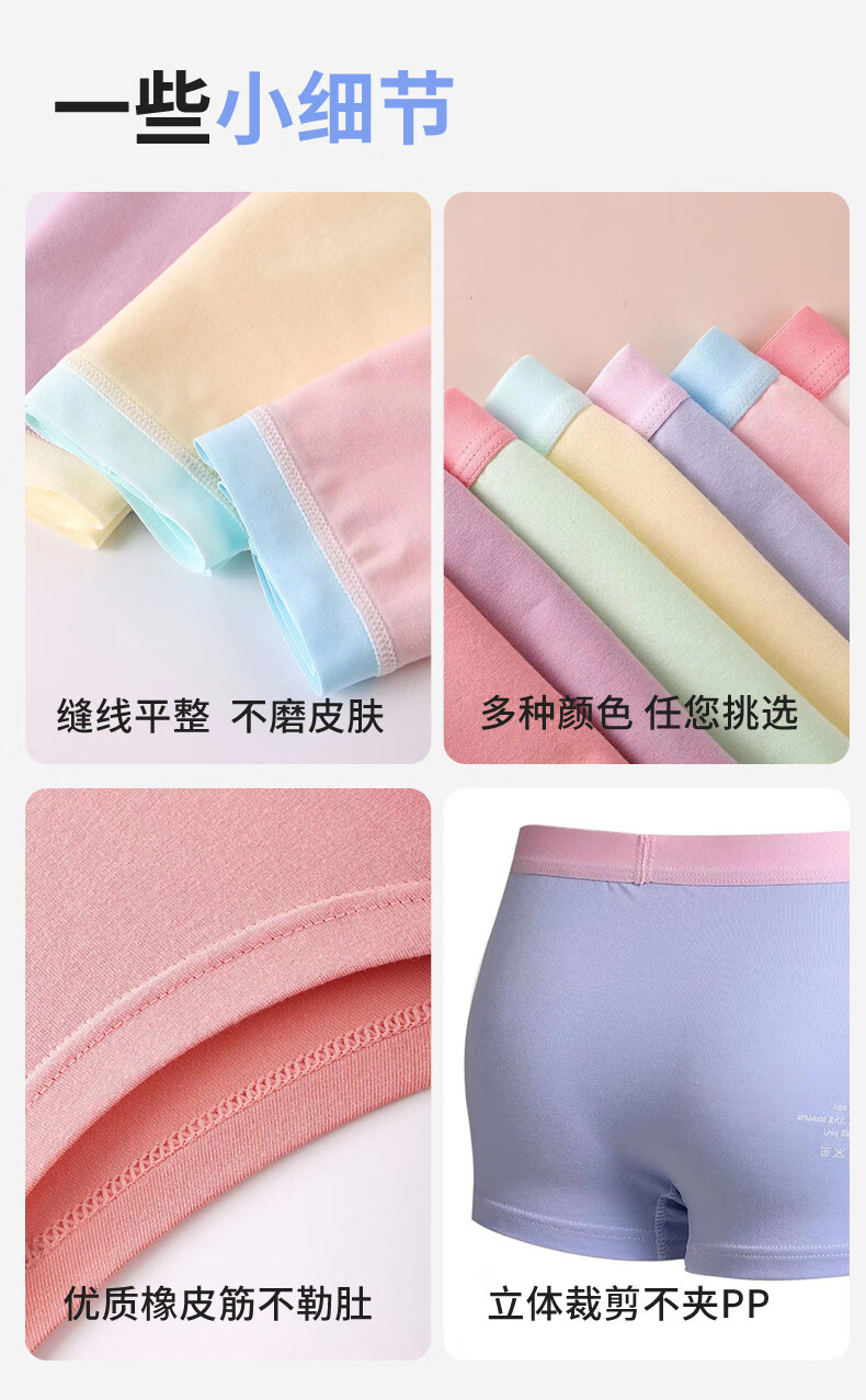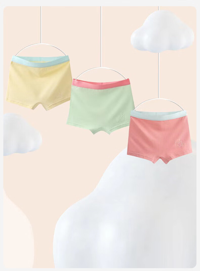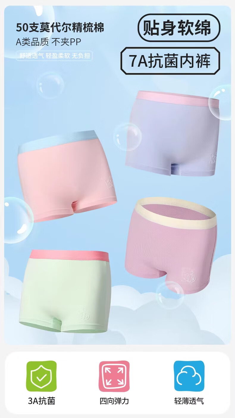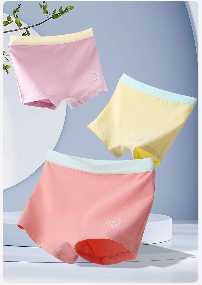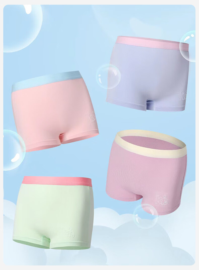 MiiOW girls underwear spring and summer thin ice silk seamless modal cotton boxer shorts medium and large children's boxer briefs yellow + white + light pink + green 120