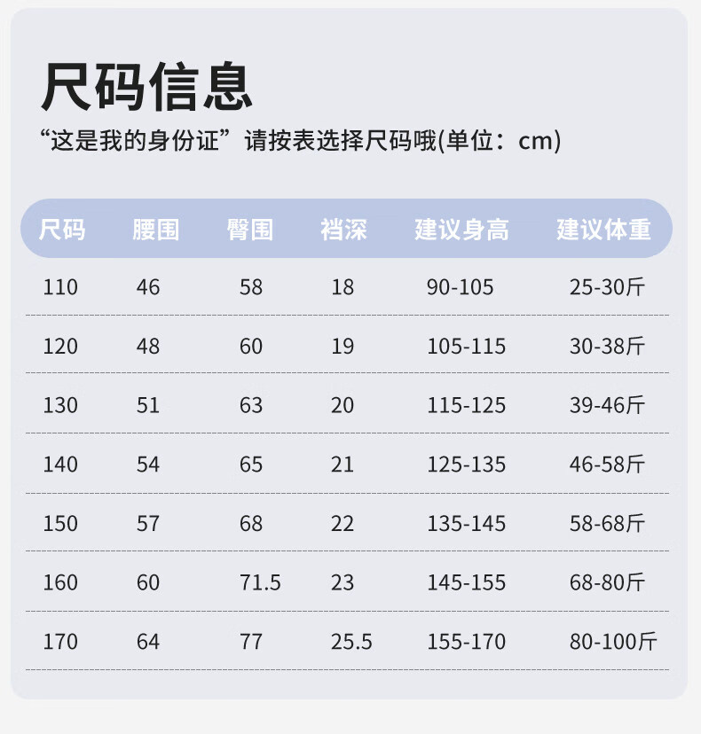 China (cm) 160-165/84-86 165-170 / 88-90 167-172 / 92-96 168-173 / 98-102 170-176 / 106-110