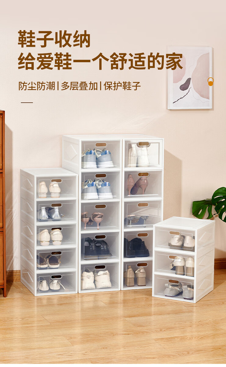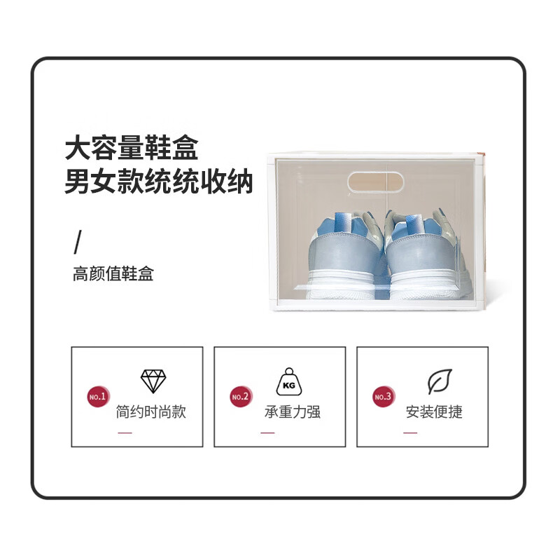 Fantasy transparent shoe box clamshell shoe storage box dust-proof plastic shoe cabinet men's and women's sneaker storage rack home space-saving basic model 1 elegant white male/female size 45 1x1x1cm