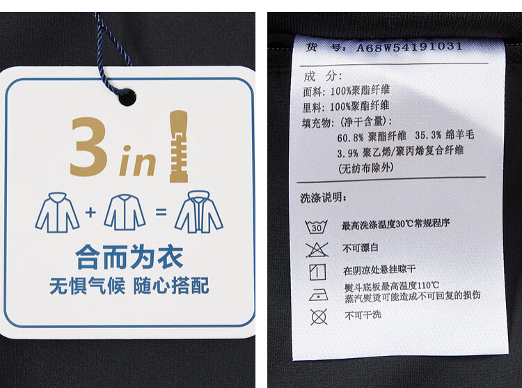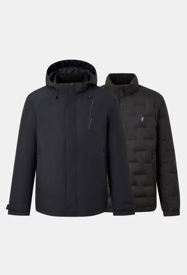 POLOWALK Three-Wear Men's Down Jacket 2025 Winter New Product 90 Duck Down Hooded Stand Collar Jacket Dark Navy Filled Down Approximately 53g~66.9g M 170/M