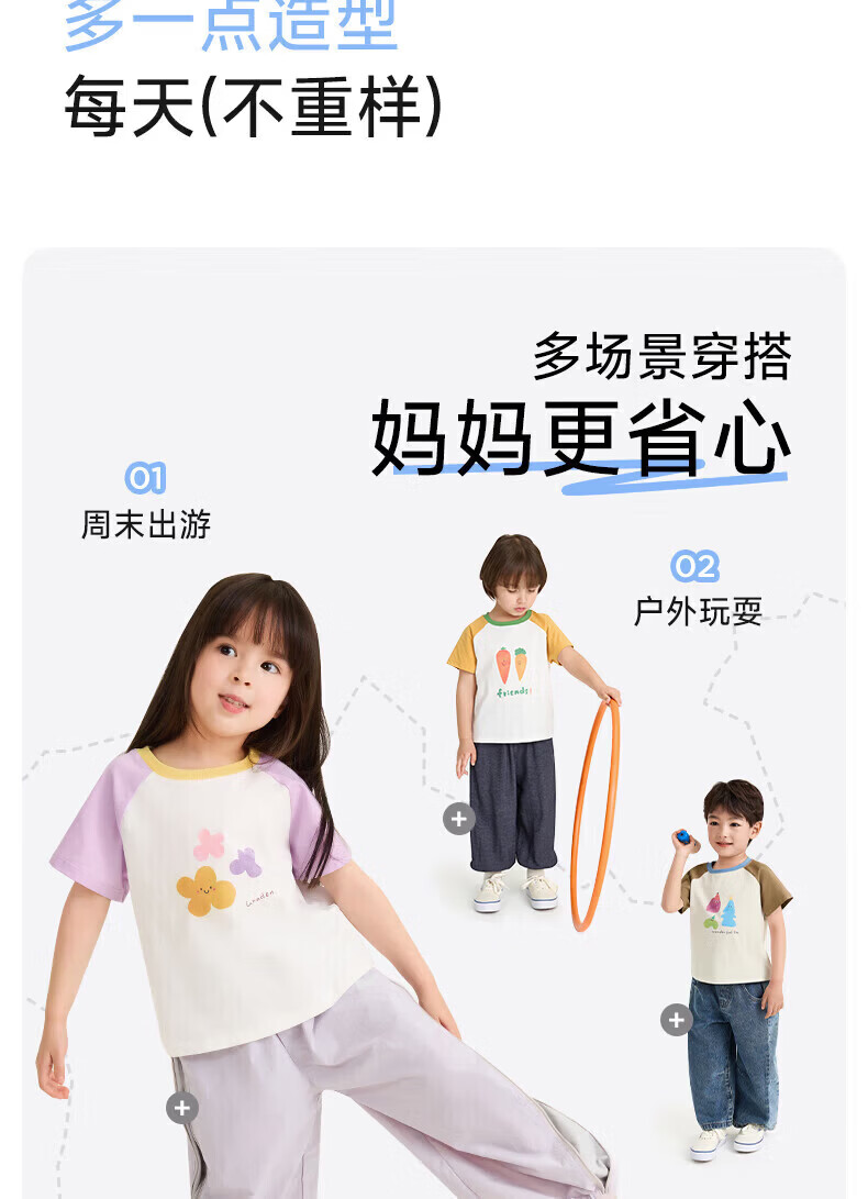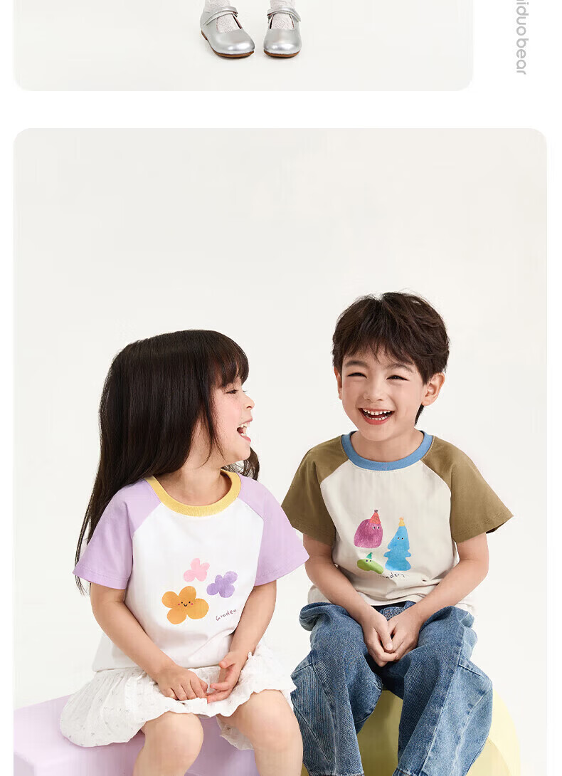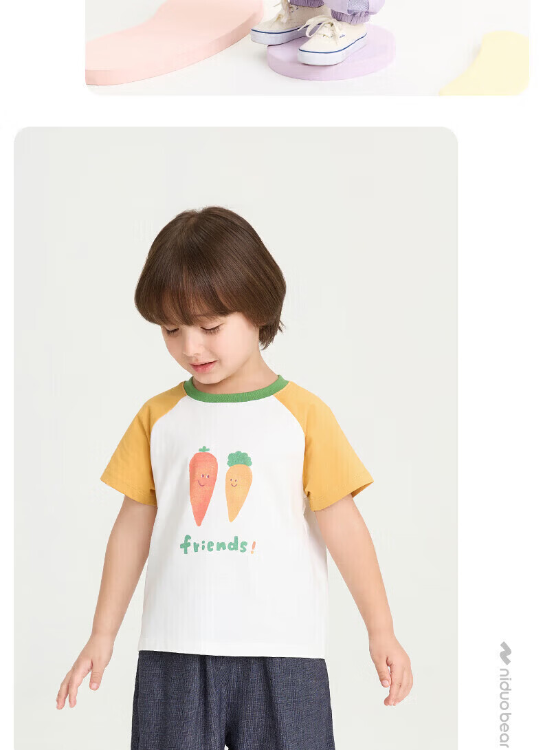 Nido Bear pure cotton summer new children's raglan short-sleeved breathable T-shirt for boys and girls baby tops birthday party 120 cm