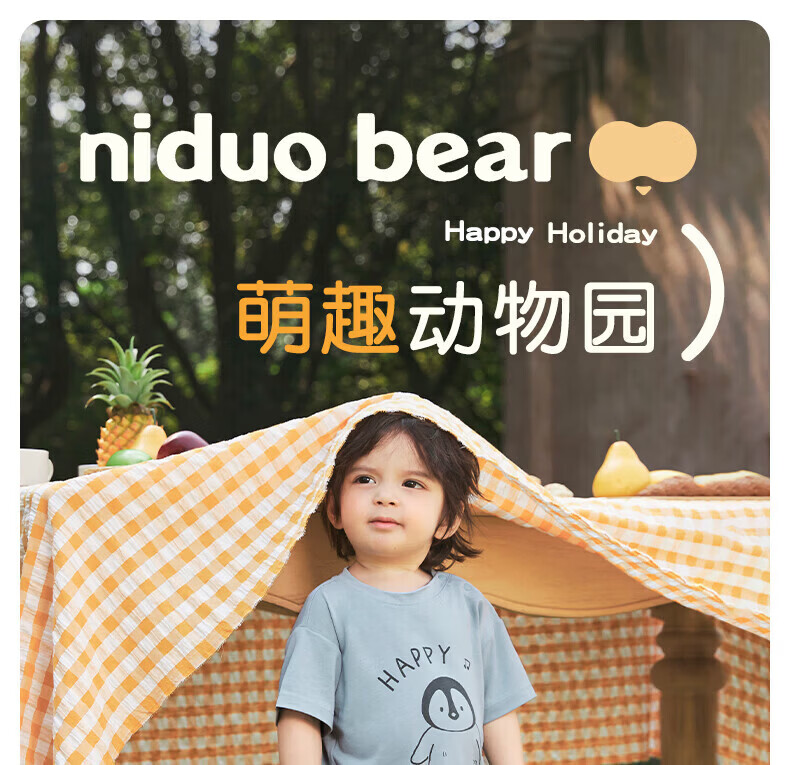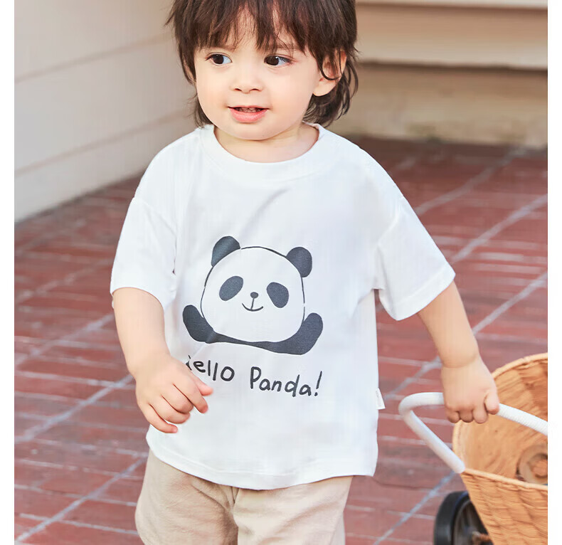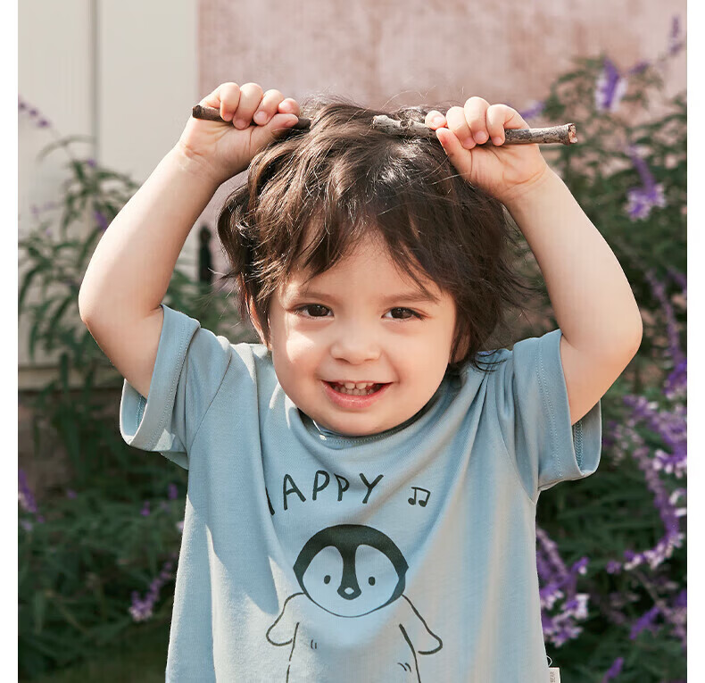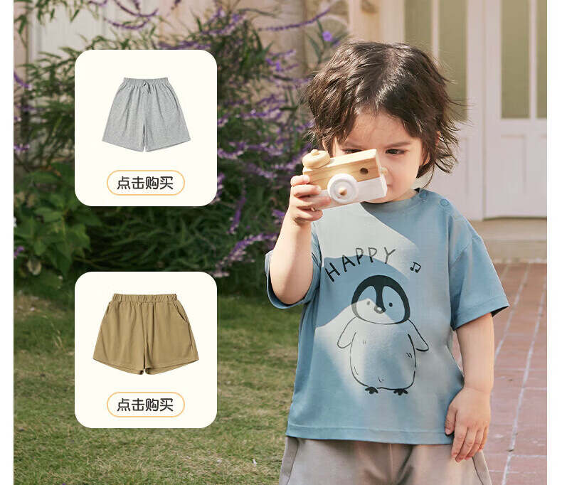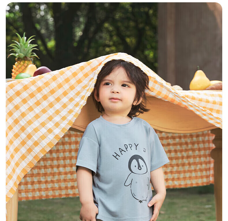 Nido Bear summer new baby short-sleeved solid color printed T-shirt infant and children's bottoming shirt breathable sports summer wear Blue Penguin 80 cm
