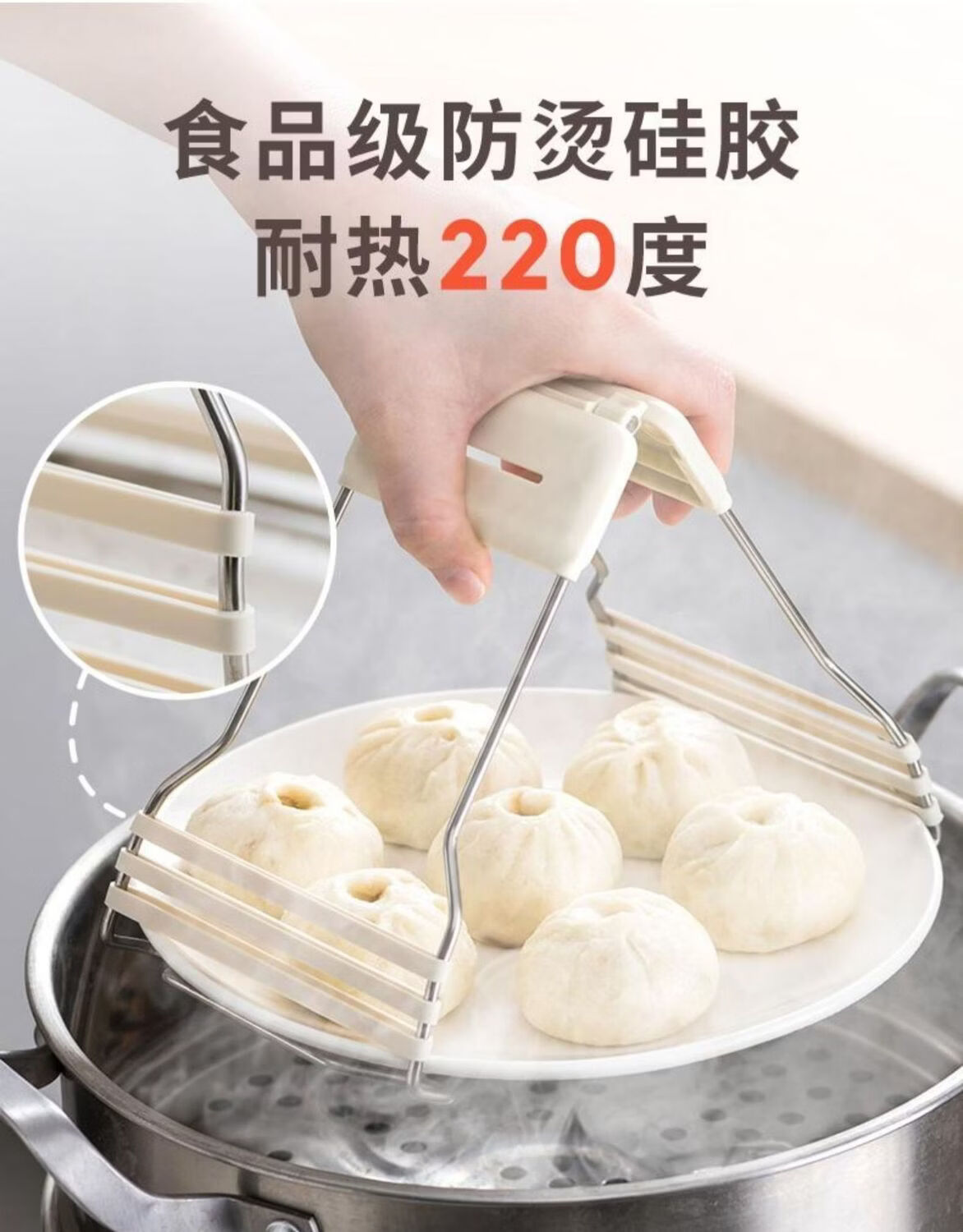 Yusenyi anti-scalding bowl clamp kitchen stainless steel silicone clamp household steaming dish serving bowl clamp artifact 1 pack anti-scalding bowl clamp