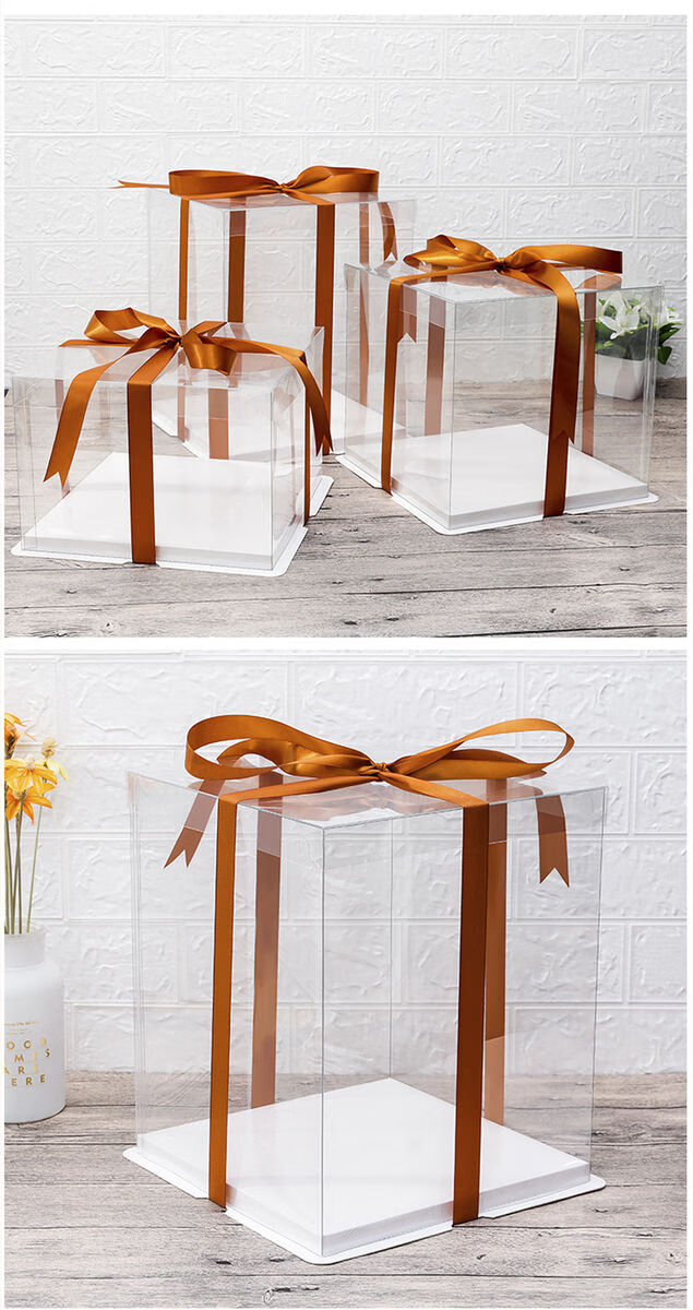 Fantasy transparent cake box 4 inches 6 inches 8 inches 10 inches 12 inches double layer balloon birthday cake packaging box fully transparent 10 inches three layers 50 sets high transparency and thickened PT material