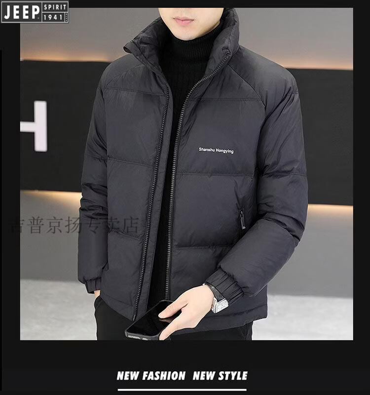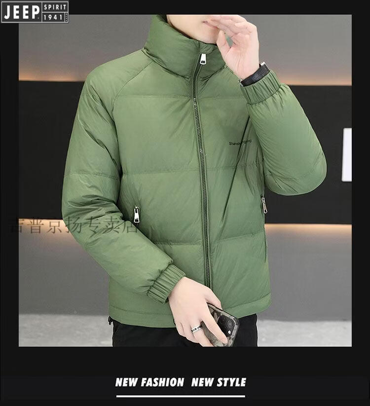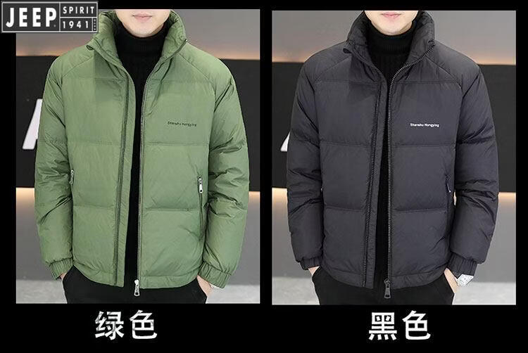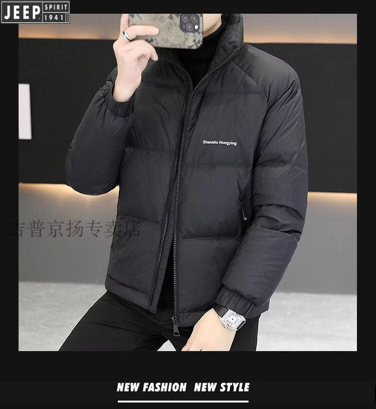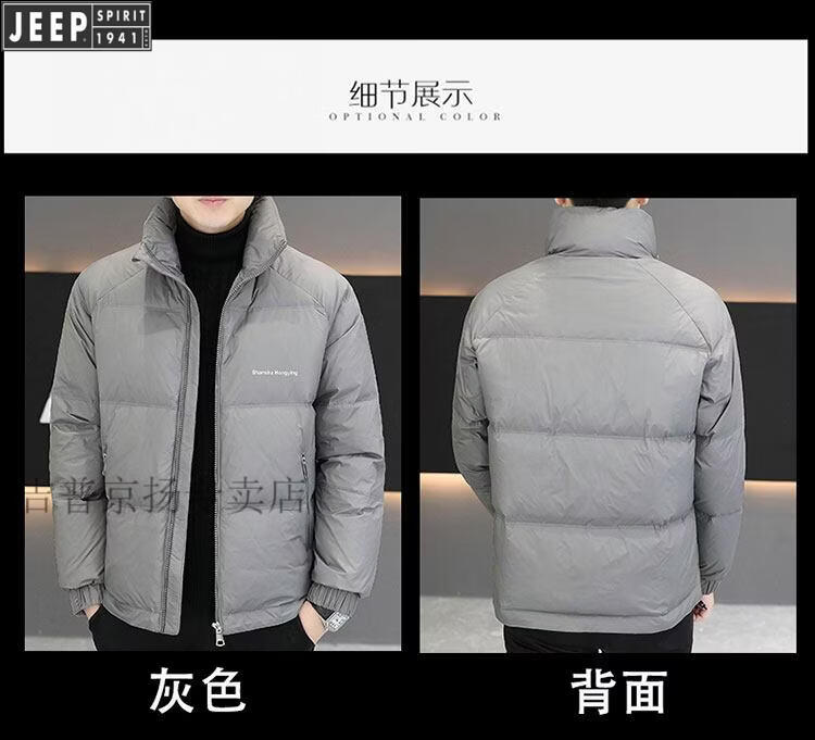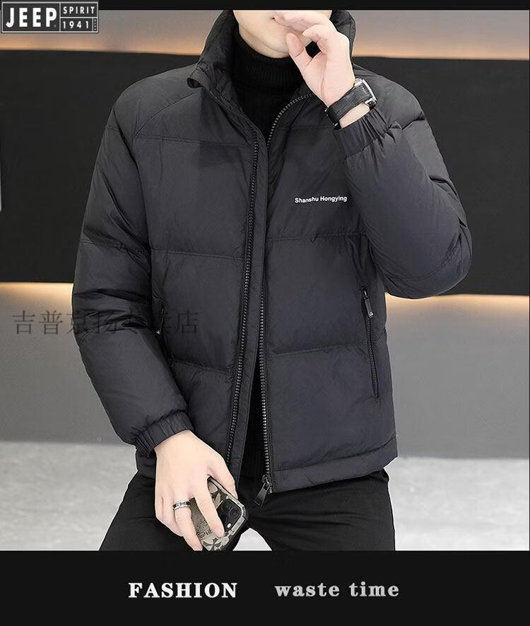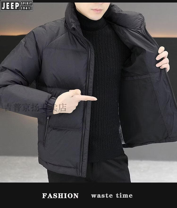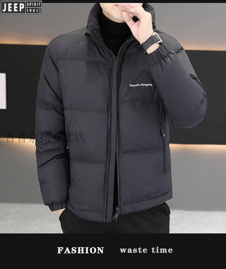 JEEP International Brand Men's Down Jacket Short Winter Stand Collar Solid Color Thickened Casual Loose Youth Jacket Trendy Black XL (Recommended 150 Jin Jin is equal to less than 0.5 kg)