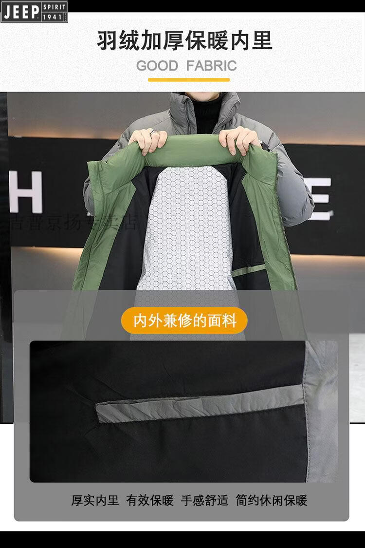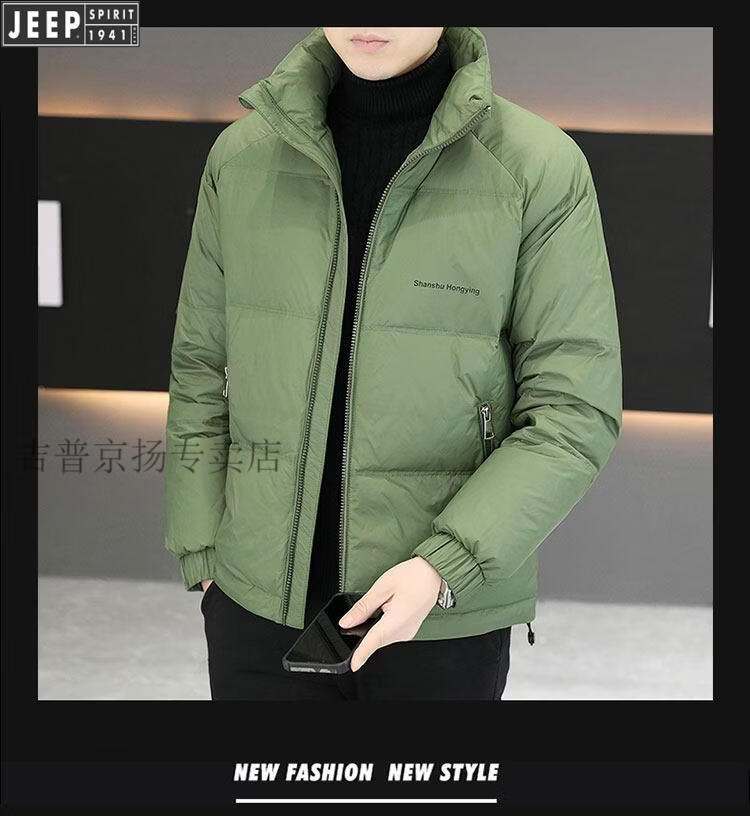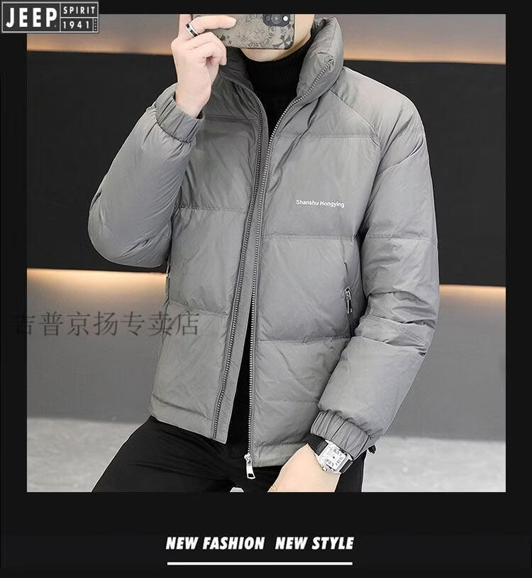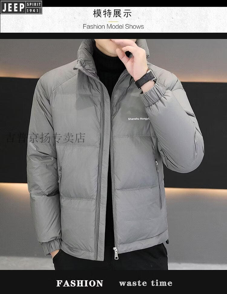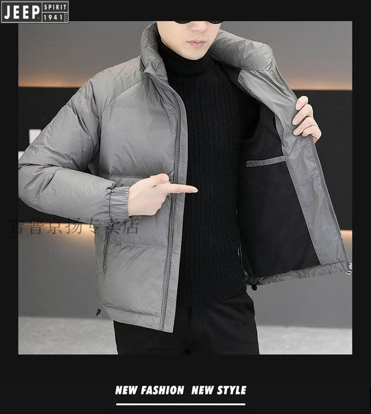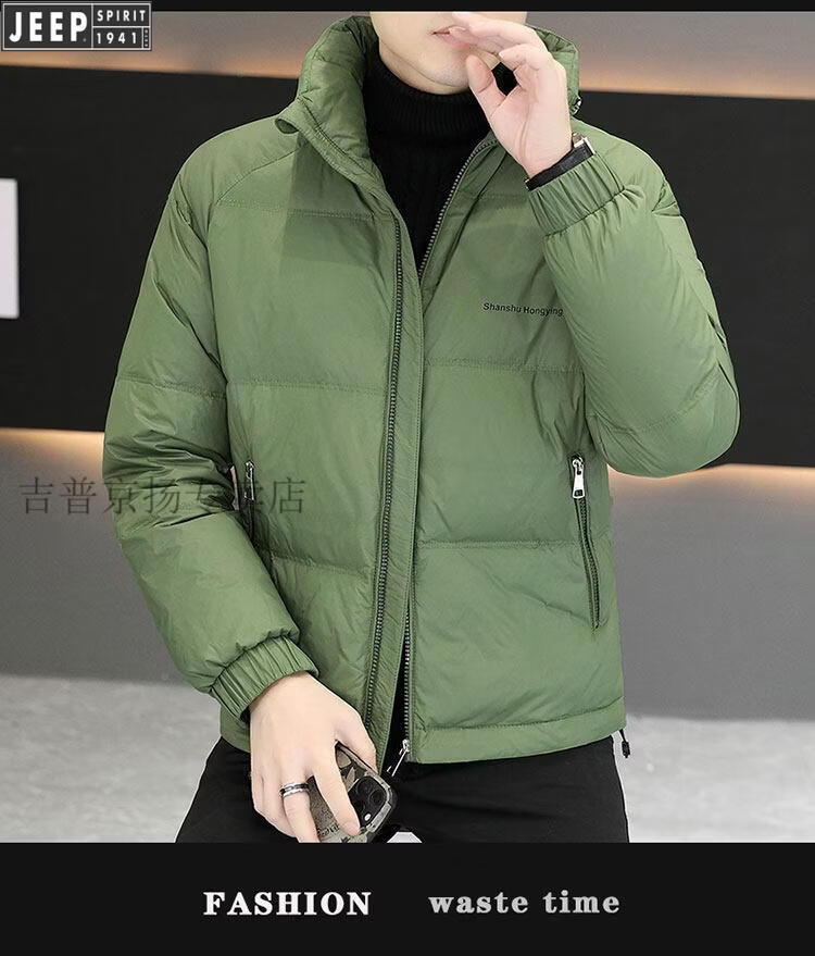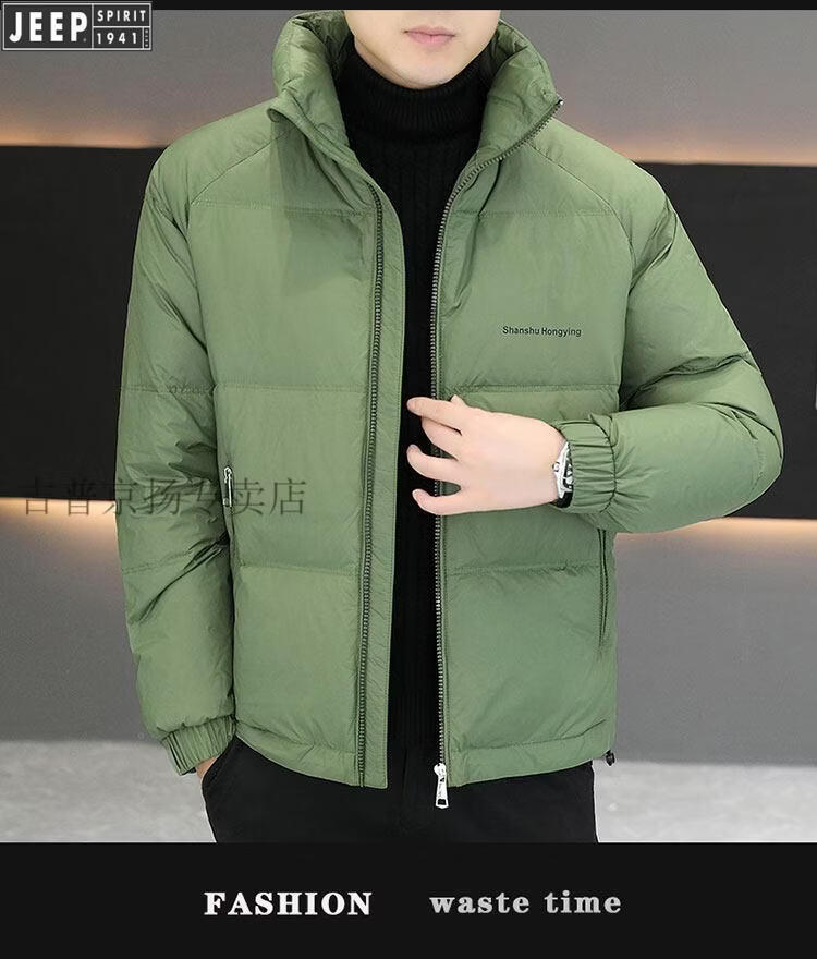 JEEP International Brand Men's Down Jacket Short Winter Stand Collar Solid Color Thickened Casual Loose Youth Jacket Trendy Black XL (Recommended 150 Jin Jin is equal to less than 0.5 kg)