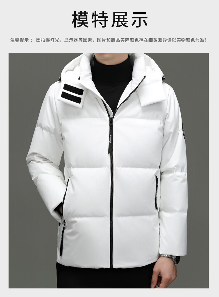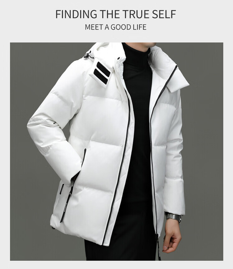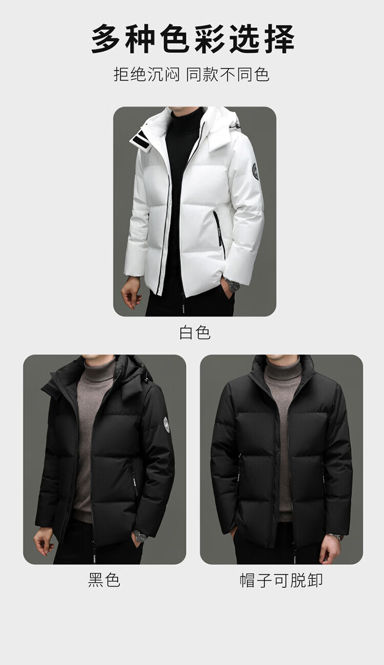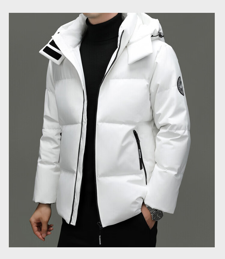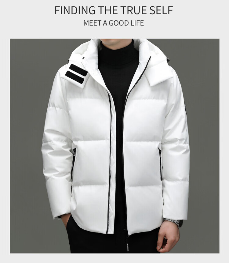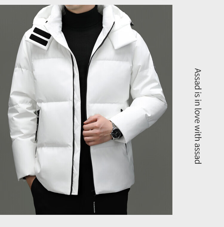Hengyuanxiang Winter Casual Hooded Men's Thickened Warm Short Down Jacket Trendy Korean Men's Loose Winter Jacket White M 170