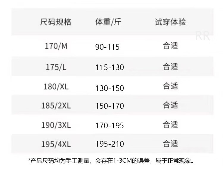 China (cm) 165 / 88-90 170 / 96-98 175 / 108-110 180 / 118-122 185 / 126-130
