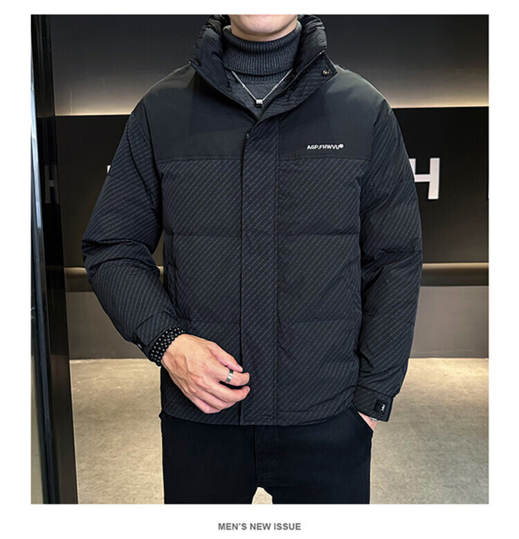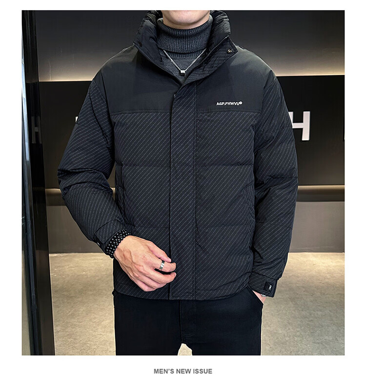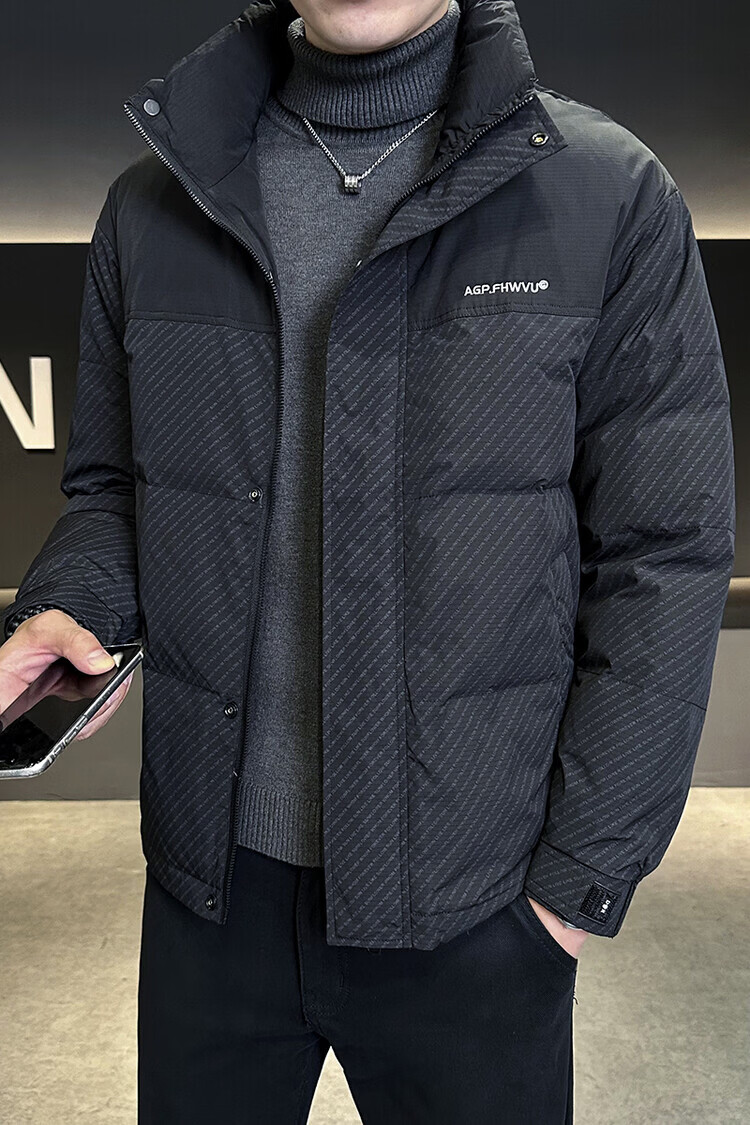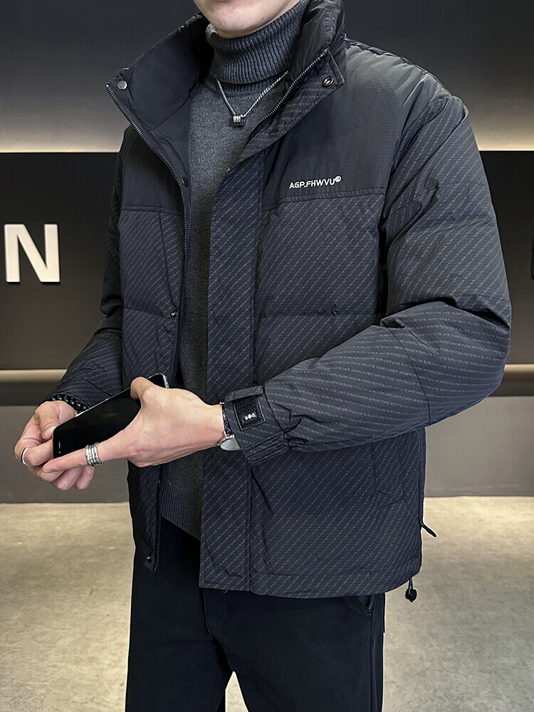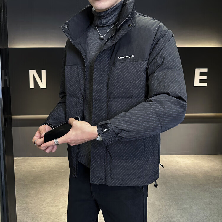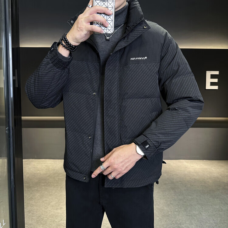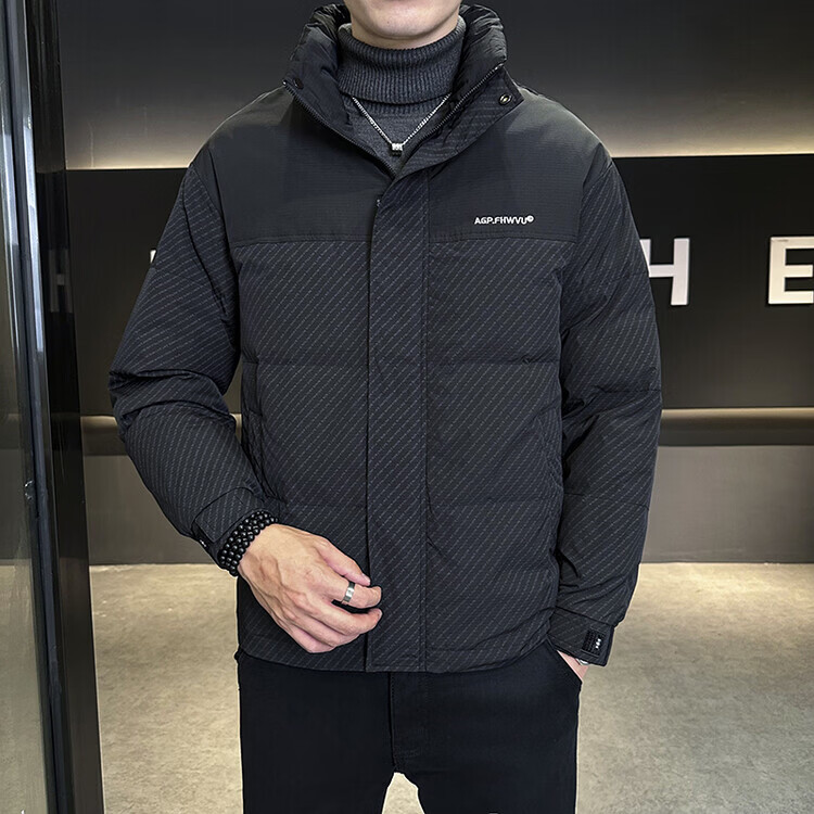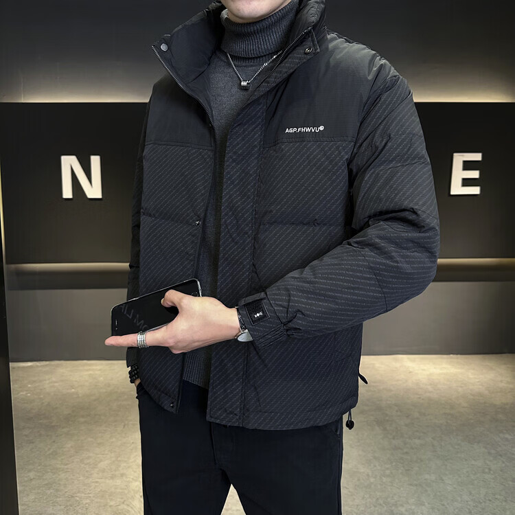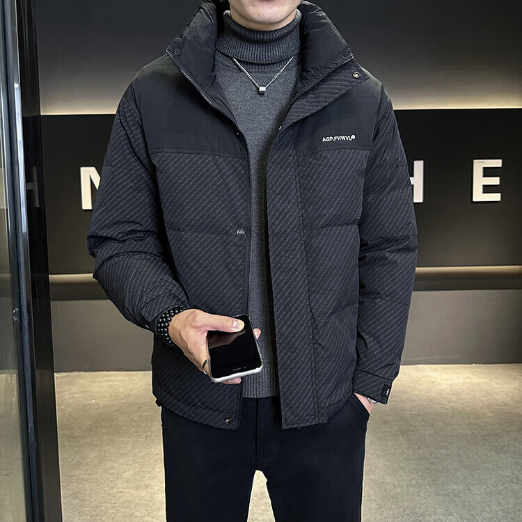 Hengyuanxiang down jacket new winter clothing men's thin and warm trendy brand high-end handsome stand-up collar thickened youth men's jacket black L