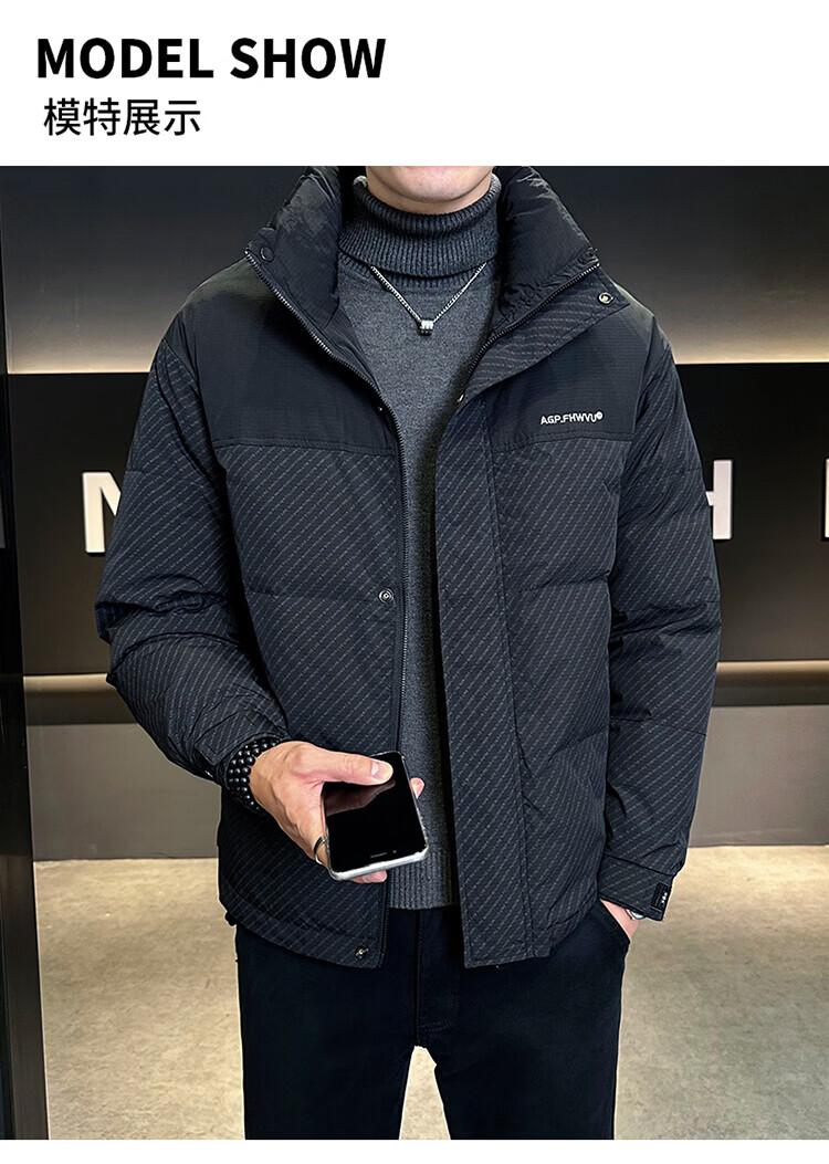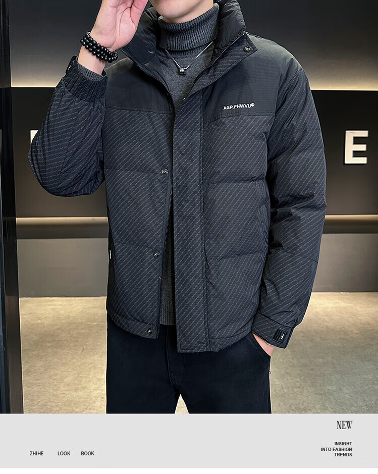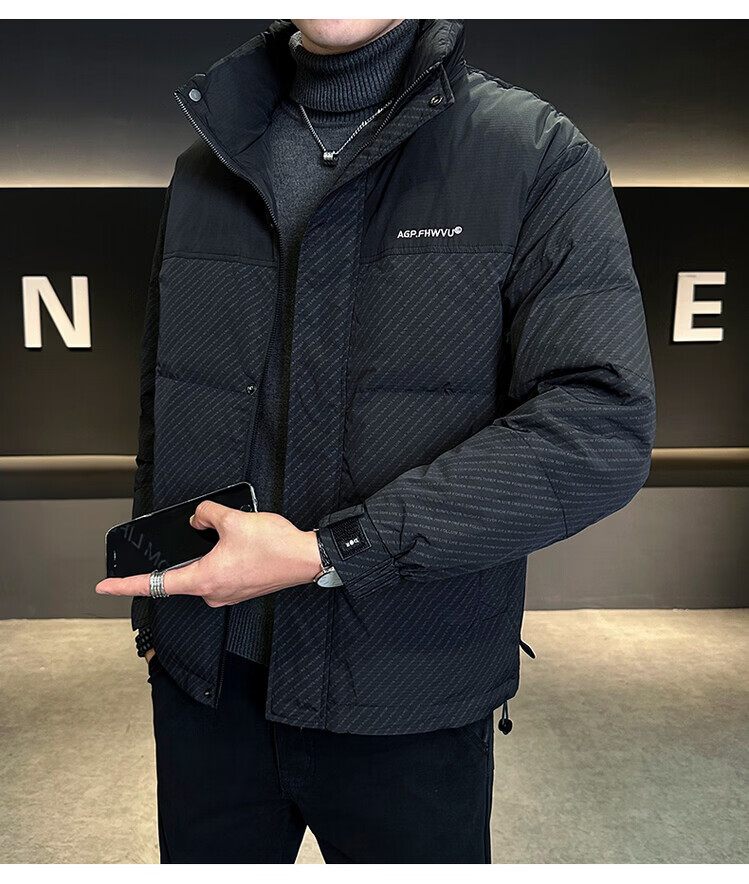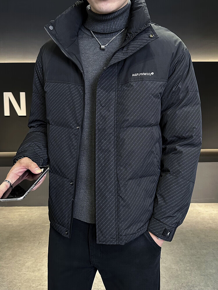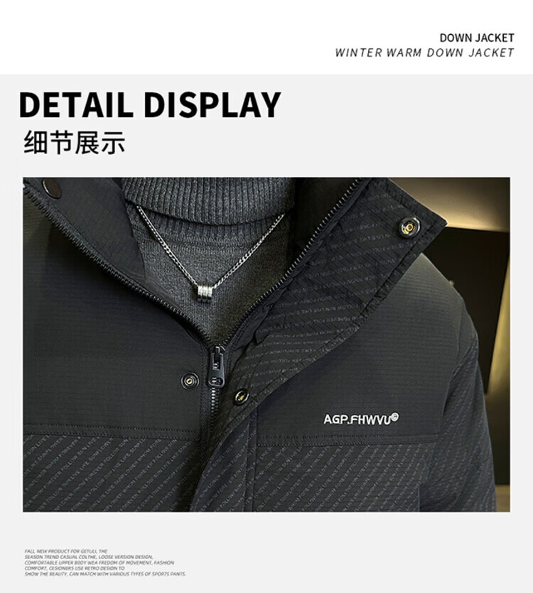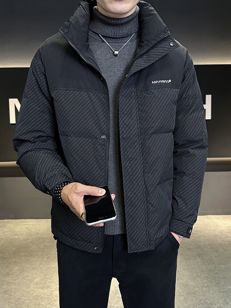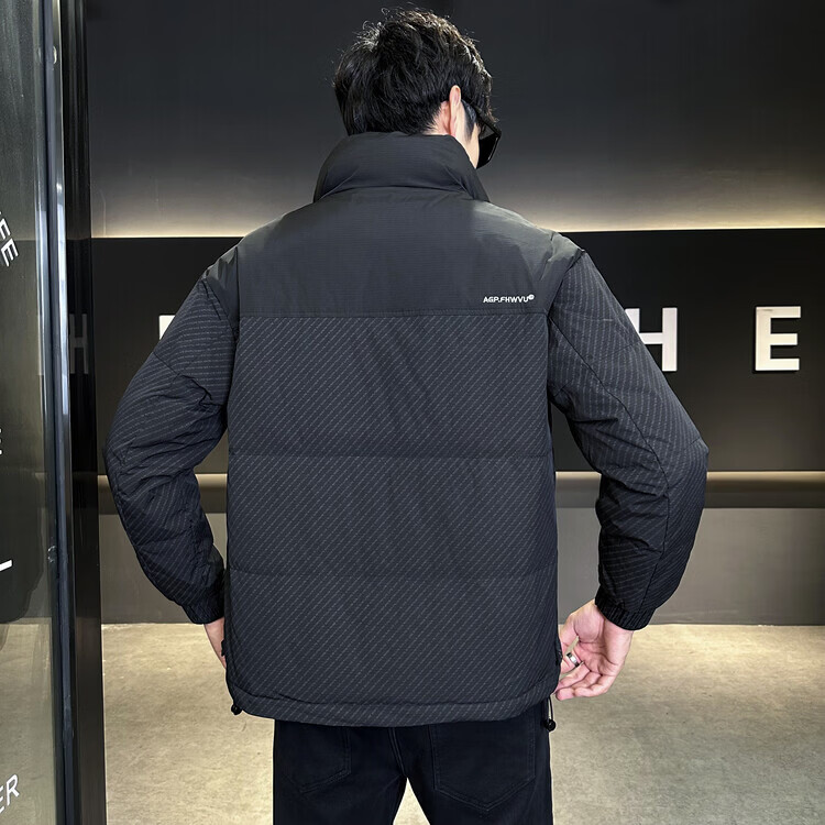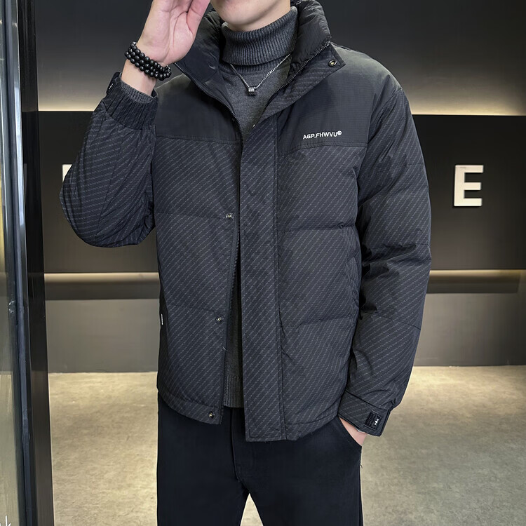 Hengyuanxiang down jacket new winter clothing men's thin and warm trendy brand high-end handsome stand-up collar thickened youth men's jacket black L